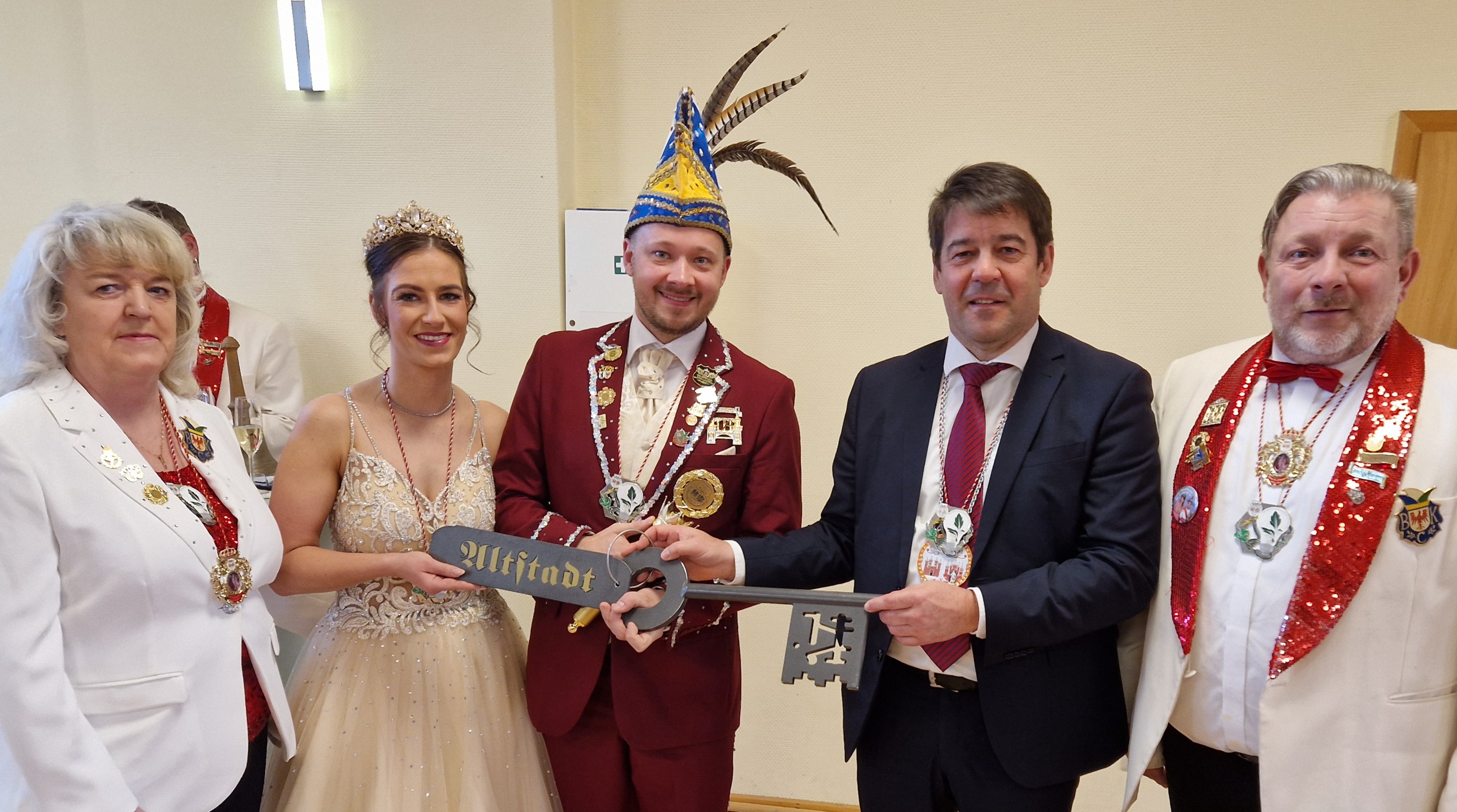 Schließlich bekam Oberbürgermeister Steffen Scheller den Schlüssel für die Altstadt vom Prinzenpaar überreicht und dankte erstmals in Reimform – für den Schlüssel, für eine großartige Saison und