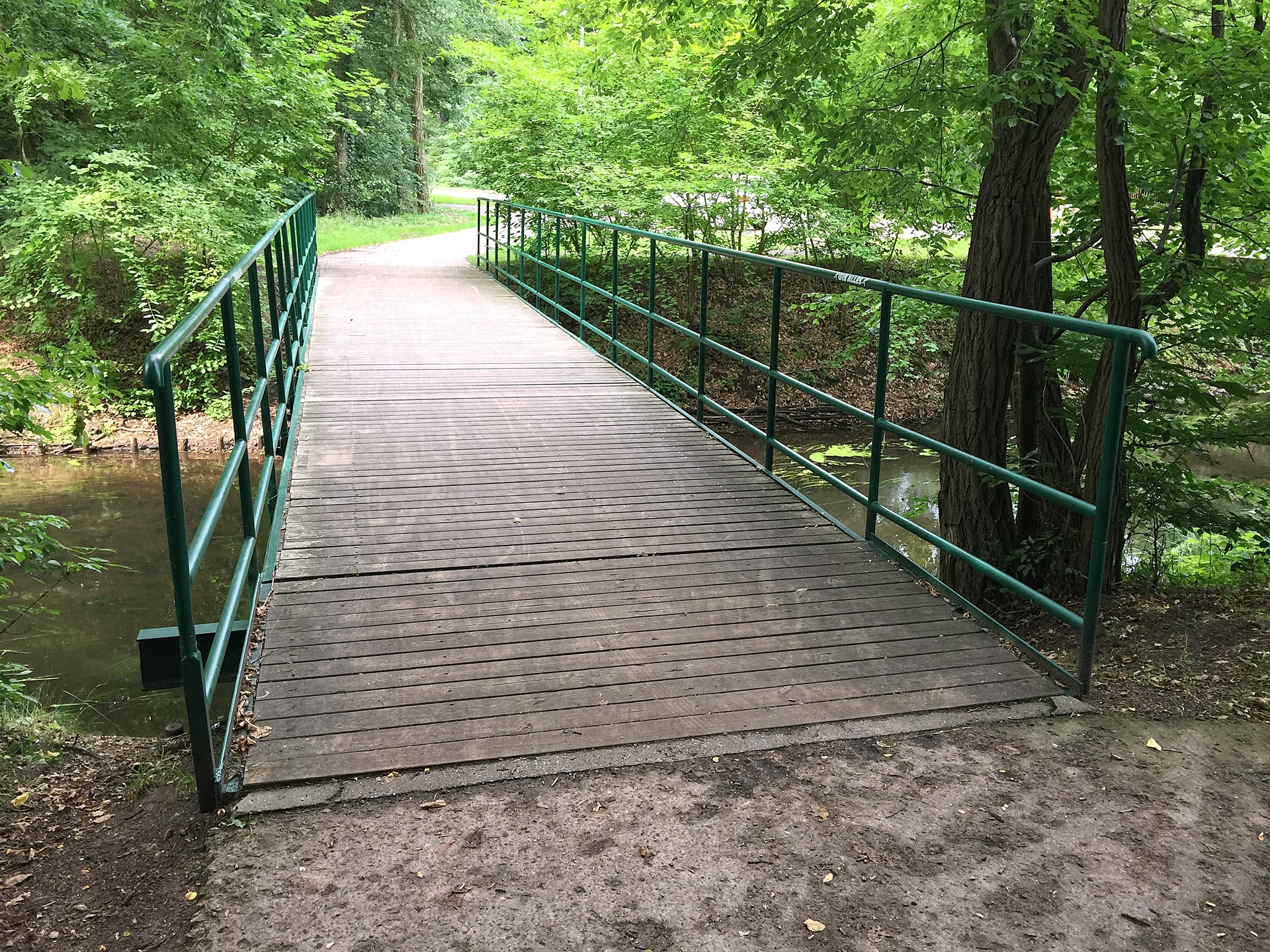 Ab Montag, 29. September 2025, beginnen die Instandsetzungsarbeiten an der Geh- und Radfahrbrücke über den Sandfurthgraben am Krugpark. Tiefbauamtsleiter Christian Fuß: