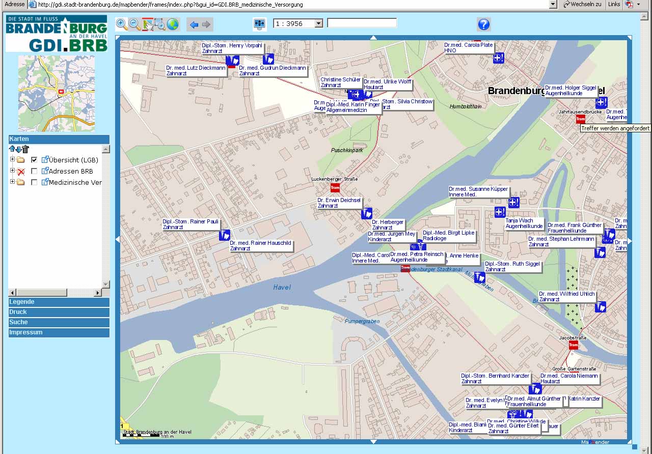 „Ausgangspunkt für unser heutiges Pressegespräch war eine Diskussion innerhalb der Stadt über die ambulante Versorgungssituation, die teilweise unsachlich geführt wurde“, erklärte Dietlind Tiemann. Die Oberbürgermeisterin hatte daraufhin von der Verwaltung in Abstimmung mit dem Städtischen Klinikum und dem Verein „Gesund in Brandenburg an der Havel“ auf Grundlage einer Stadtkarte die Standorte von Arztpraxen, d.h. die Praxisstandorte der Allgemeinmediziner, der Kinderärzte und der Fachärzte, sowie auch die Praxen der Zahnärzte darstellen lassen.