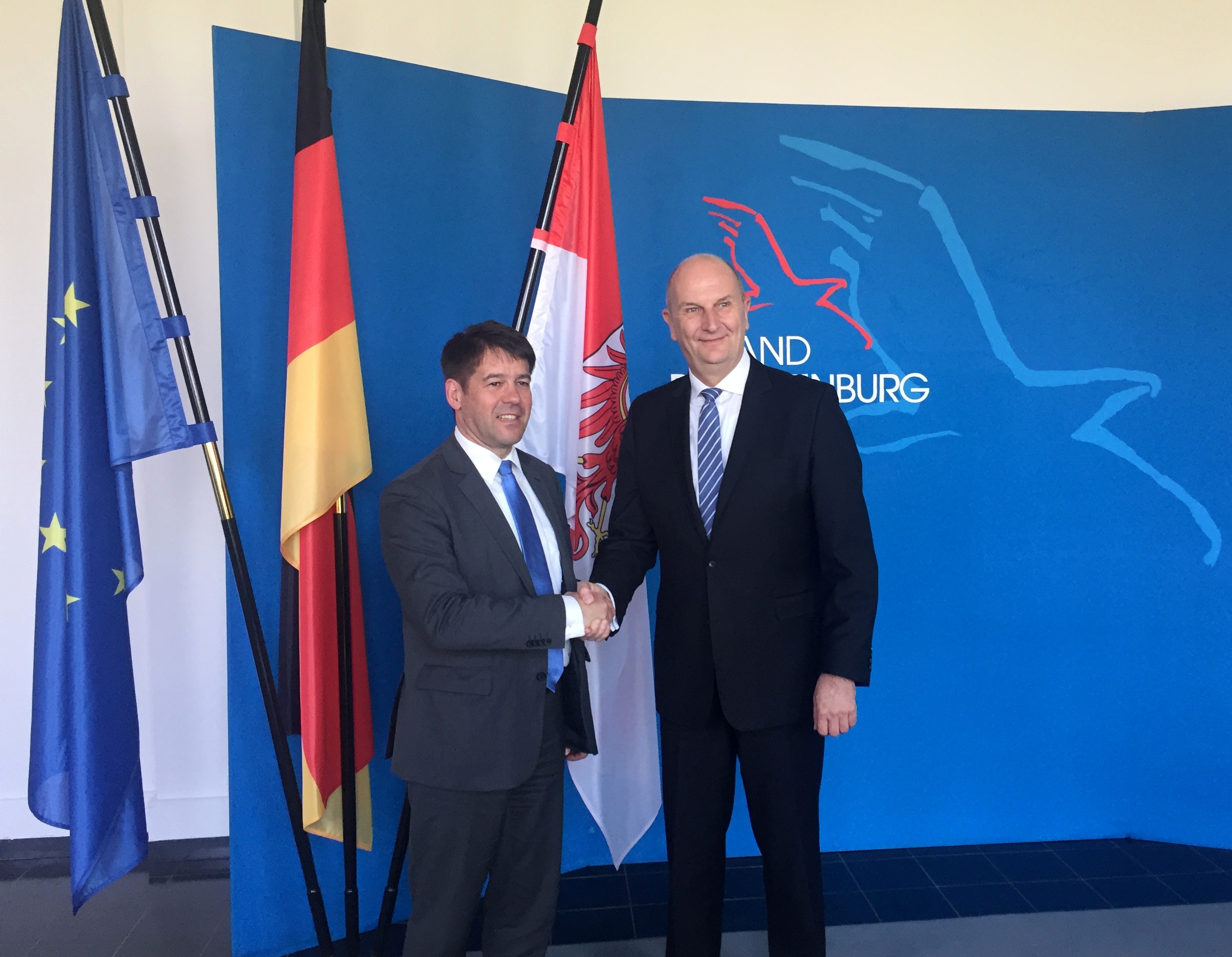 Oberbürgermeister Steffen Scheller wurde heute, 12.04.2018, im Rahmen eines Antrittsbesuches von Ministerpräsident Dr. Dietmar Woidke in der Staatskanzlei empfangen.