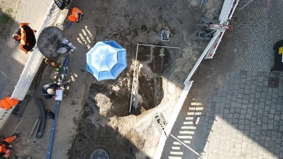 Auf dem Hof in der Abtstraße 21/22, der anlässlich eines Neubaus archäologisch untersucht wurde, konnten großflächige Befunde einer spätmittelalterlichen Nutzung und Bebauung freigelegt werden. (Wolfgang Niemeyer)