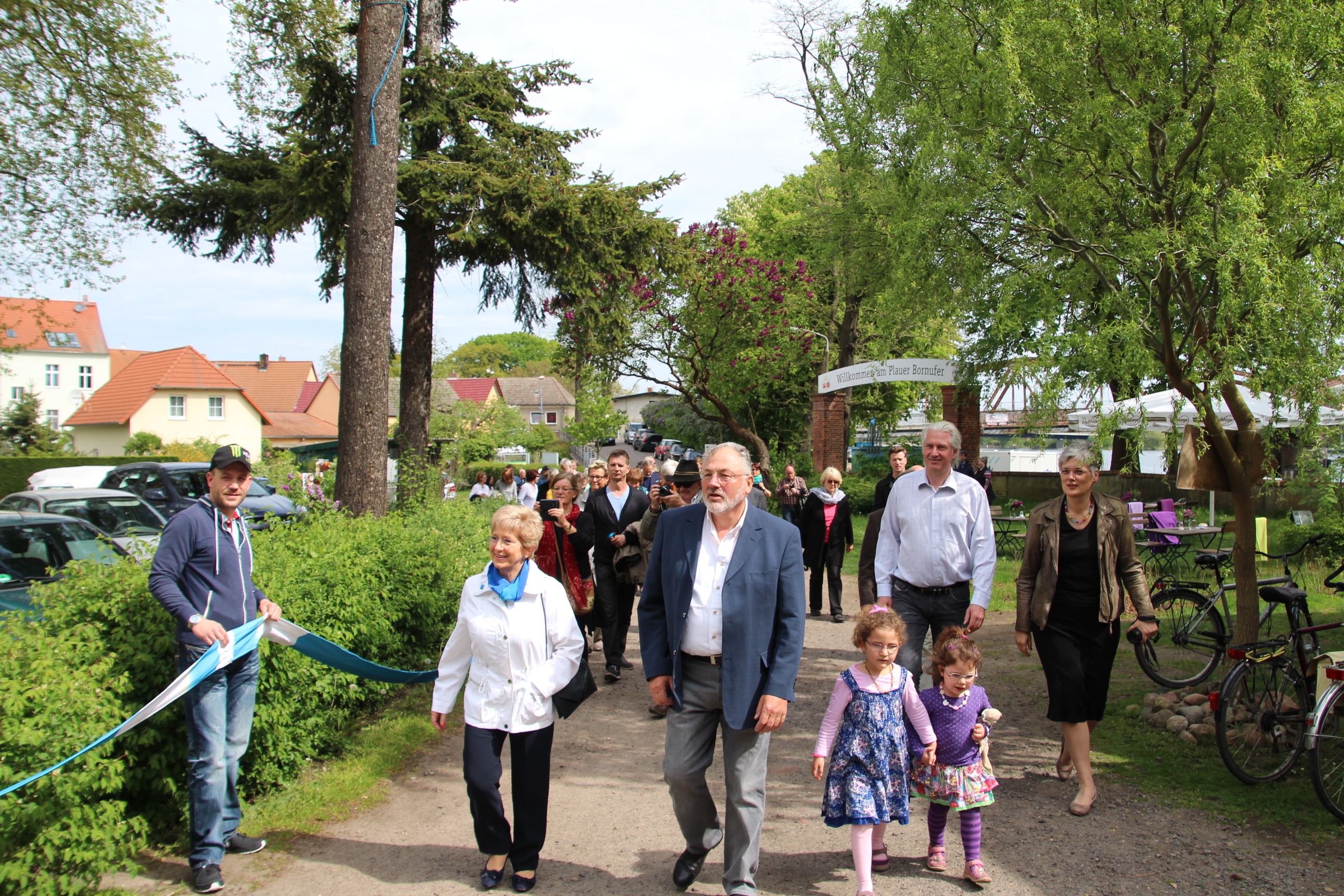 Oberbürgermeisterin Dr. Dietlind Tiemann bedankte sich bei den vielen Sponsoren und ehrenamtlichen Unterstützern, die dieses Projekt möglich gemacht haben und unterstrich, dass mit dem Plauer Fontaneweg dem Blauen Band der Havel eine weitere Perle hinzugefügt werde, die Menschen in unsere einzigartige Kulturlandschaft einlade.