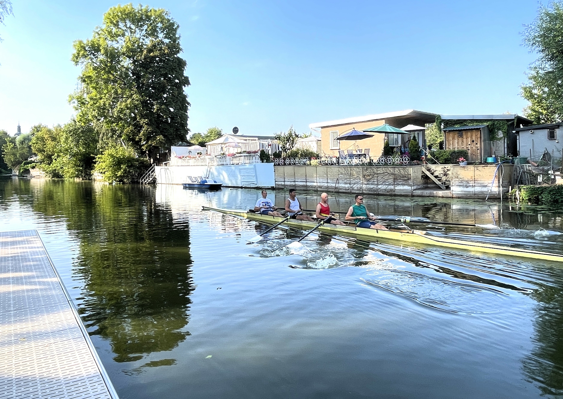 Der Australier Uwe Dombrowski bereitet sich seit Mitte Juli beim Ruder-Club-Havel Brandenburg (R. C. H. B.) auf die World Rowing Masters Regatta (WRMR) vor, die vom 11. bis zum 15. September 2024 auf der Regattastrecke Beetzsee stattfindet. Es ist sein erster Start bei einer solchen Meisterschaft. Zumeist werden beim Training im Vierer ca. 15 km auf dem Beetzsee und auf der Havel gerudert.