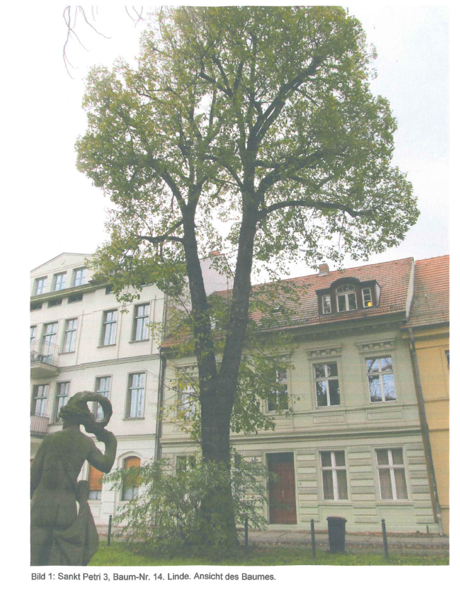 Auf der Grünanlage in Sankt Petri muss die große Linde aus Gründen der Verkehrssicherheit leider gefällt werden.