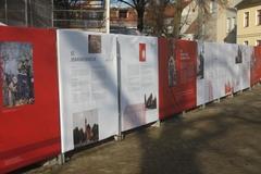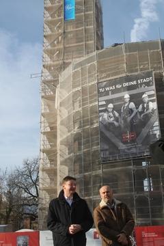 Für längere Zeit wird nun der Bauzaun das Stadtbild bestimmen, der in prominenter Lage zum Salzhofufer hin eine 30 m lange Front besitzt und sich bestens als Schauwand eignet. Er wird vollflächig mit einer bunt bedruckten Plane ausgestattet.