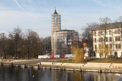 Die alte Franziskanerklosterkirche St. Johannis liegt seit 750 Jahren malerisch am Südende der Altstadt und beherrscht die Stadtsilhouette am Salzhofufer. St. Johannis war nach einem Bombentreffer 1944 und dem Einsturz des Daches und der restlichen Gewölbe 1986 eine traurige Ruine. Eine Notsicherung 1991 bewahrte den Bestand, konnte aber den weiteren Verfall nicht stoppen. Nachdem bereits 2008/09 die Fundamente durch Bohrpfähle wieder standfest gemacht worden waren, begann nun der Ausbau zu einem geschlossenen Raum. Die so inszenierte Ruine soll im wieder gewonnenen Kirchraum an zentraler Stelle die Blumenschau der Bundesgartenschau 2015 aufnehmen.