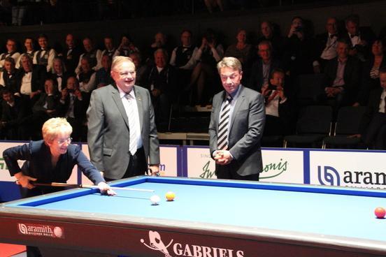 Am Samstag hat Oberbürgermeisterin Dr. Dietlind Tiemann als Schirmherrin der Billard-Carambol-EM 2015 den symbolischen ersten Anstoß (Break-In) ausgeführt.