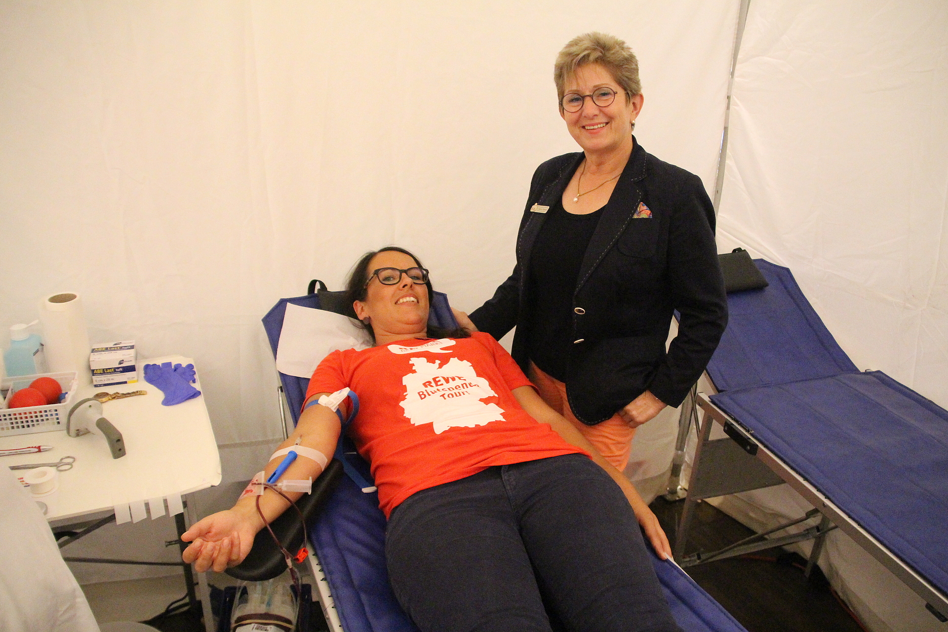 Auch Oberbürgermeisterin Dr. Dietlind Tiemann unterstütze vor Ort die Aktion und warb um Blutspenden. „Ich würde gern selber spenden, darf es aber nicht. Deshalb danke ich jedem, der sich zur Blutspende bereit erklärt, denn es kann jeder betroffen sein. Es ist so wichtig, dass immer ausreichend Blut zur Verfügung steht.“