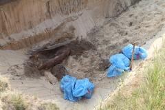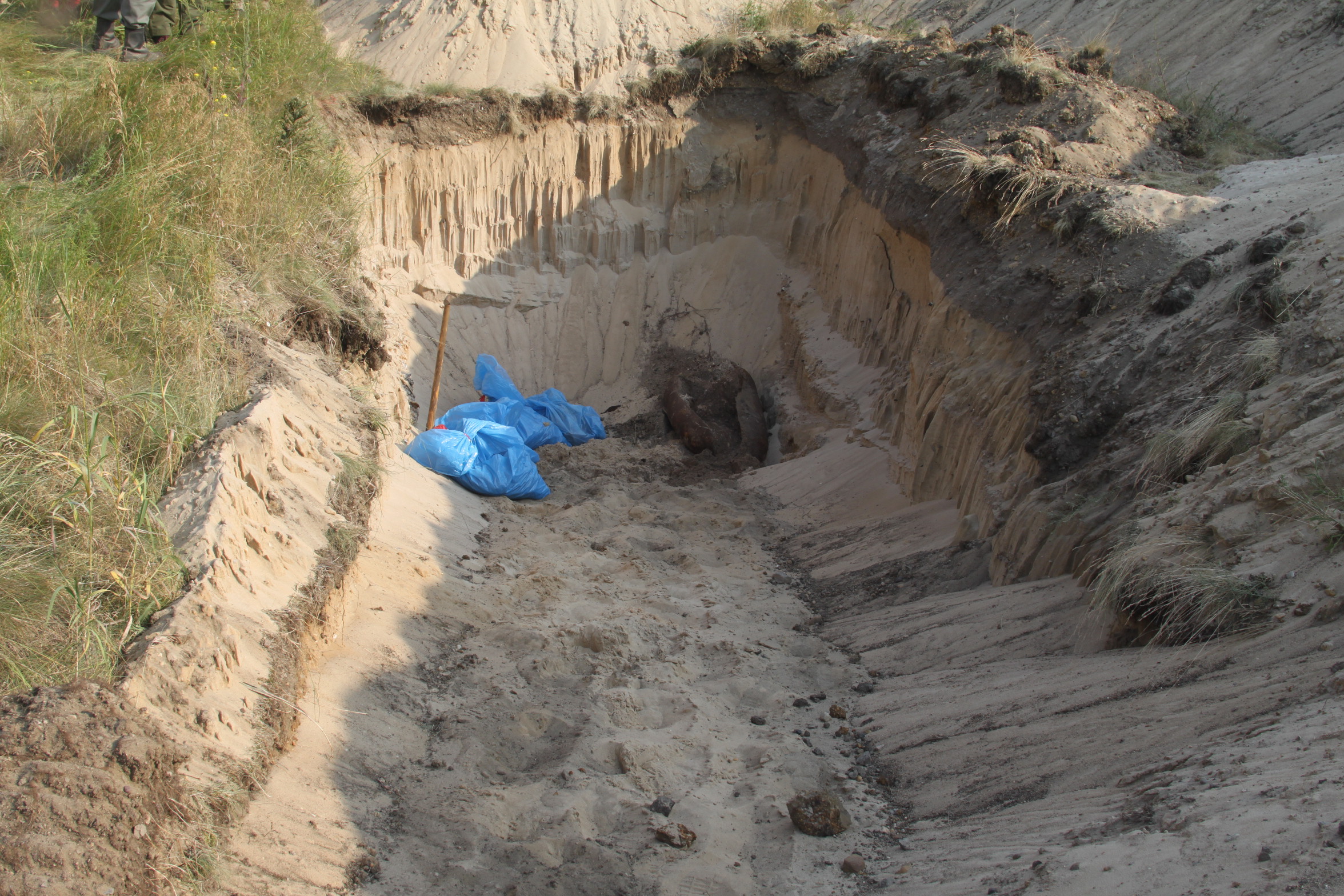 Bilder der Bombe zum Downloaden. (Zur Erklärung: In den blauen Säcke befindet sich Sprengstoff aus der Bombe.)