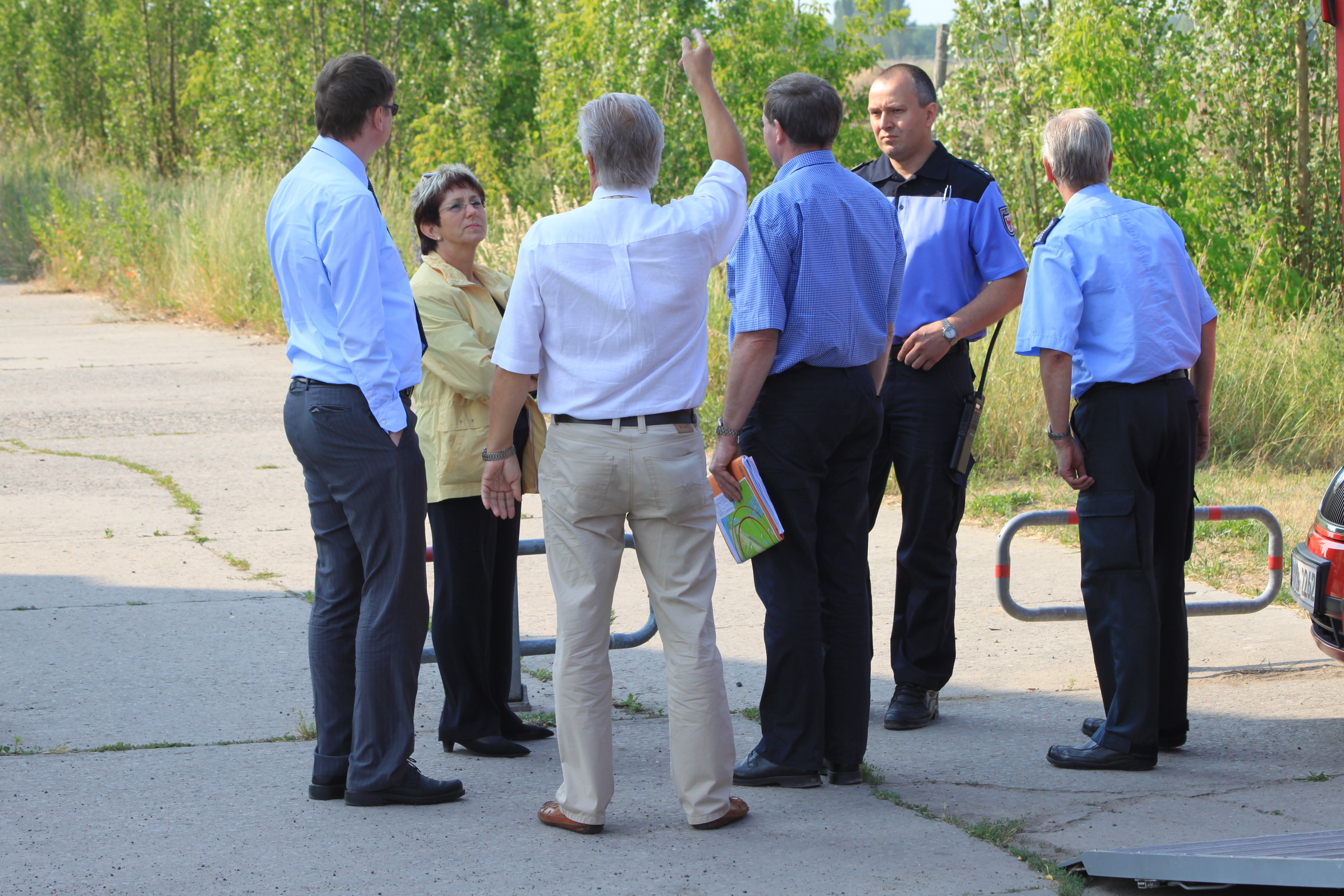 Der Verwaltungsstab traf sich um 08:00 Uhr am Einsatzort in der Einsteinstraße. Von hier aus wurde die Evakuierung der betroffenen Unternehmen koordiniert. Zum Verwaltungsstab gehörten Oberbürgermeisterin Dr. Dietlind Tiemann, Beigeordneter Michael Brandt, Amtsleiter des Ordnungsamtes Michael Scharf und der Stellvertreter Lothar Pötschke, Herr Böse von der Feuerwehr und Herr Fuchs von der Polizei sowie der städtische Pressesprecher. Ab 09:45 Uhr waren alle Evakuierungsmaßnahmen abgeschlossen.