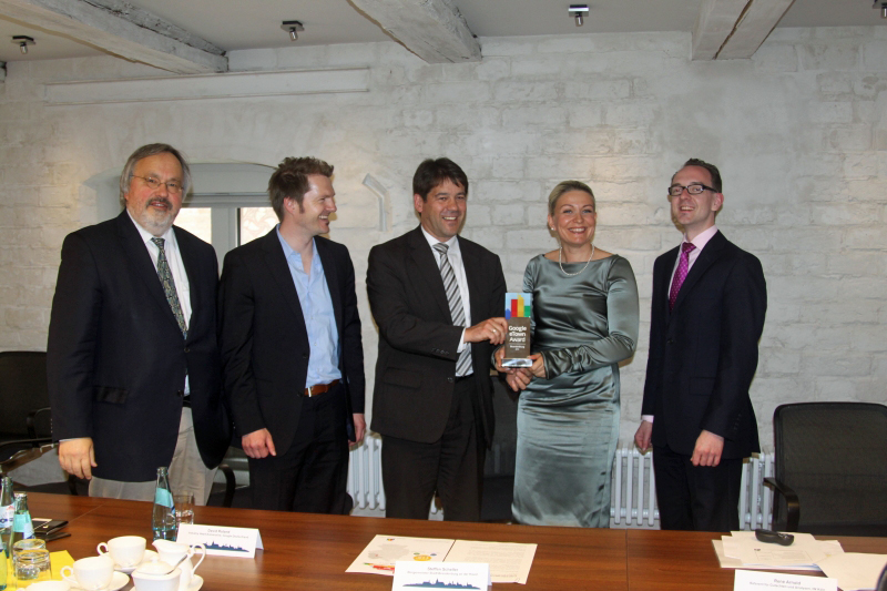 Am Donnerstag, dem 30.05.2013, zeichneten David Roland, Google Deutschland, und René Arnold, Institut der deutschen Wirtschaft (IW) Köln, die Stadt Brandenburg an der Havel als digitalste Stadt im Postleitzahlengbiet 1 aus. Bürgermeister Steffen Scheller nahm den eTown-Award entgegen.