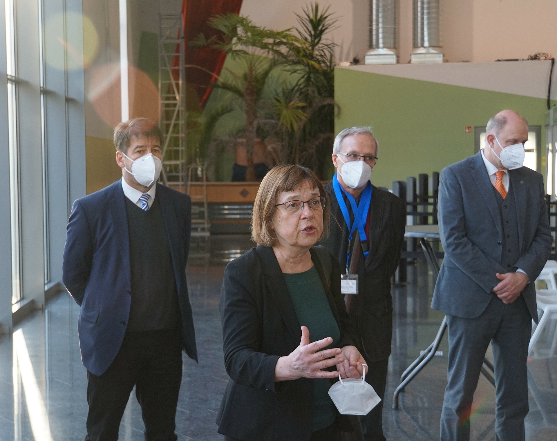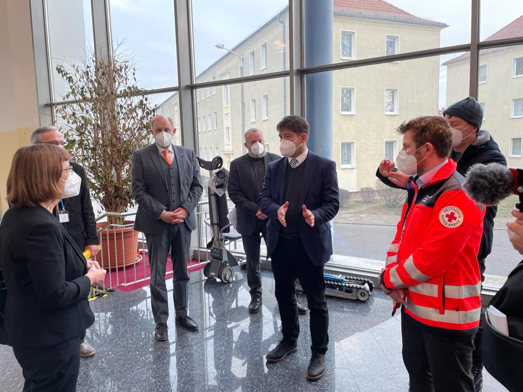 Beim Start des Impfzentrums waren mit vor Ort: Gesundheitsministerin Ursula Nonnemacher, Oberbürgermeister Steffen Scheller, Wolfgang Blasig, Landrat des Landkreises Potsdam-Mittelmark, Roger Lewandowski, Landrat des Landkreises Havelland, Dipl.-Med. Andreas Schwark, Vorstand der KVBB, Andreas Griebel, Vorsitzender des DRK-Kreisverbands Brandenburg an der Havel e.V., David Kreuziger, Vorstandsmitglied Landesverband Berlin/Brandenburg, Johanniter-Unfall-Hilfe e.V., sowie Stefan Bornholt, operativer Leiter des Impfzentrums (DRK).