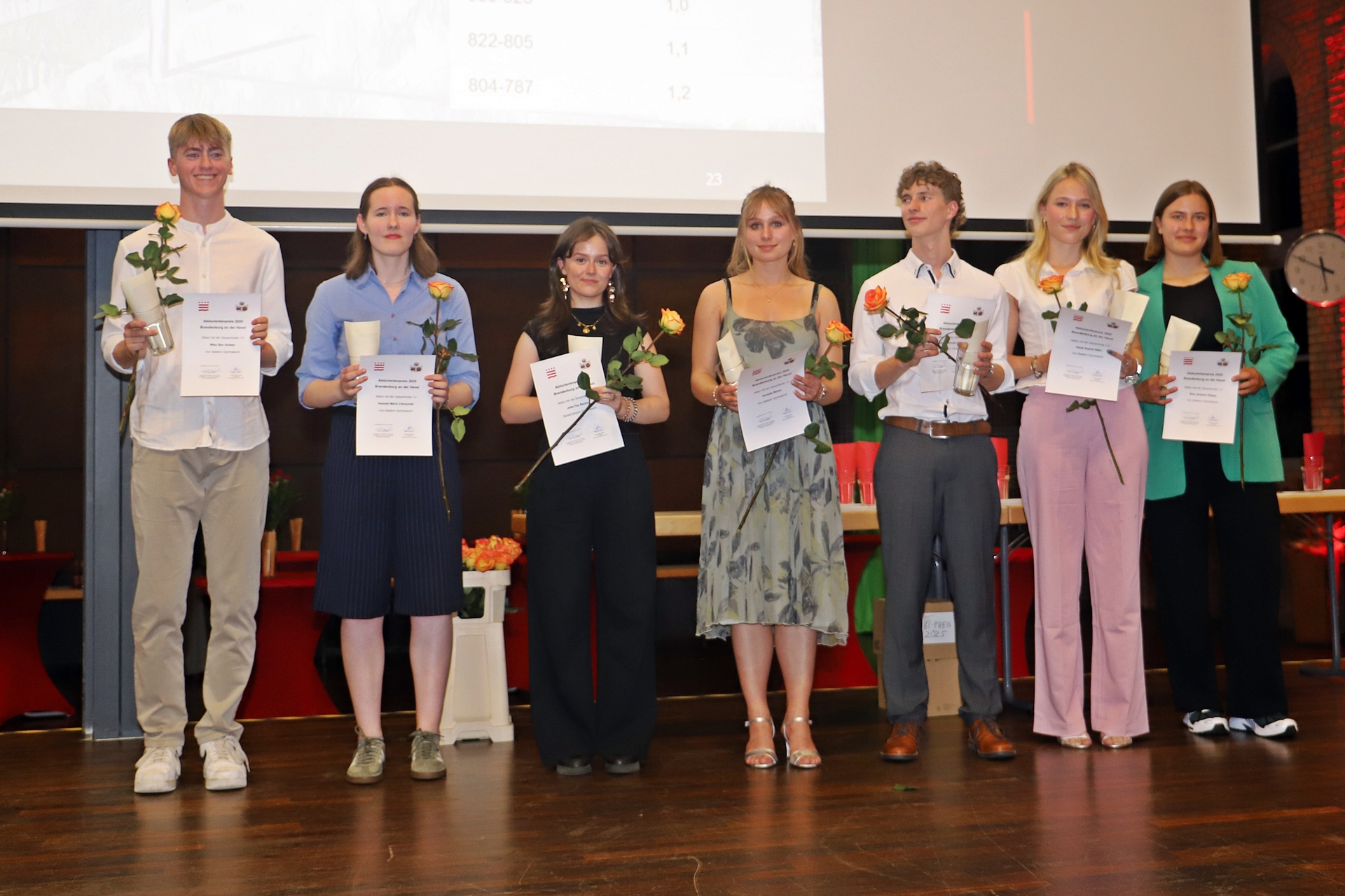 Der beste Abiturient Oskar Konrad Grunicke erreichte die Gesamtnote 1,0. Das gelang auch Jette Fee Becker vom Bertolt-Brecht-Gymnasium sowie Karlotta Bluhm, Hannah Maria Cierzynski, Mika Ben Scheer, Paula Sophie Stein und Sina Antonia Stippa vom von Saldern-Gymnasium.
