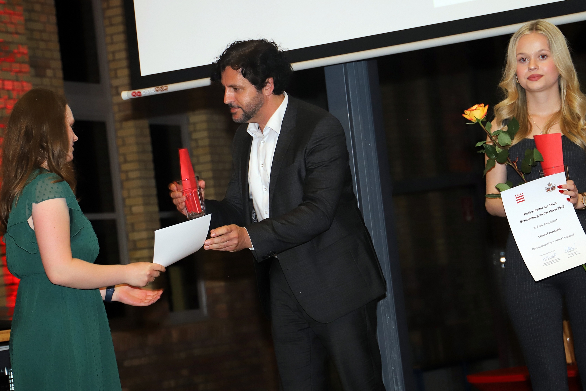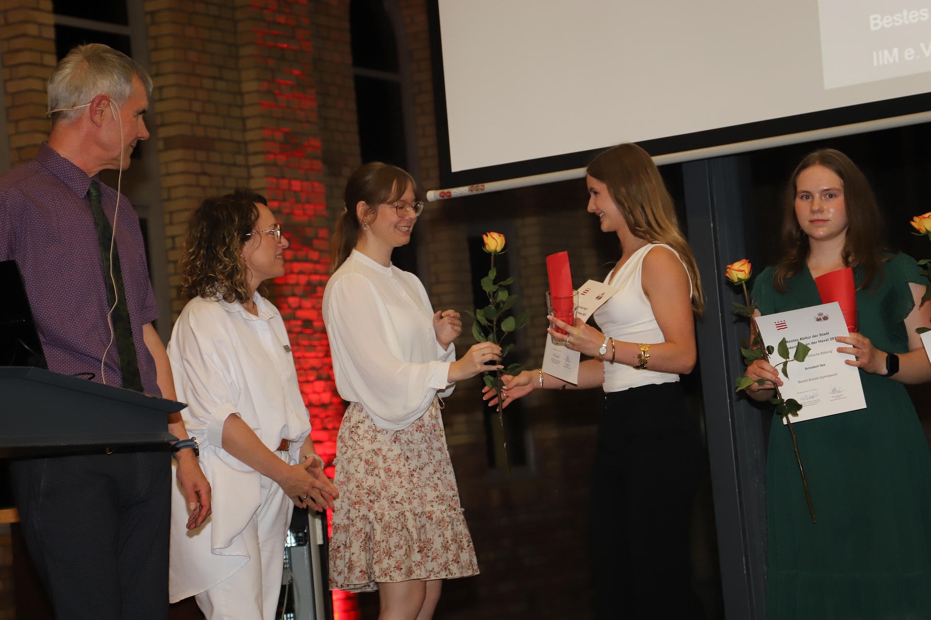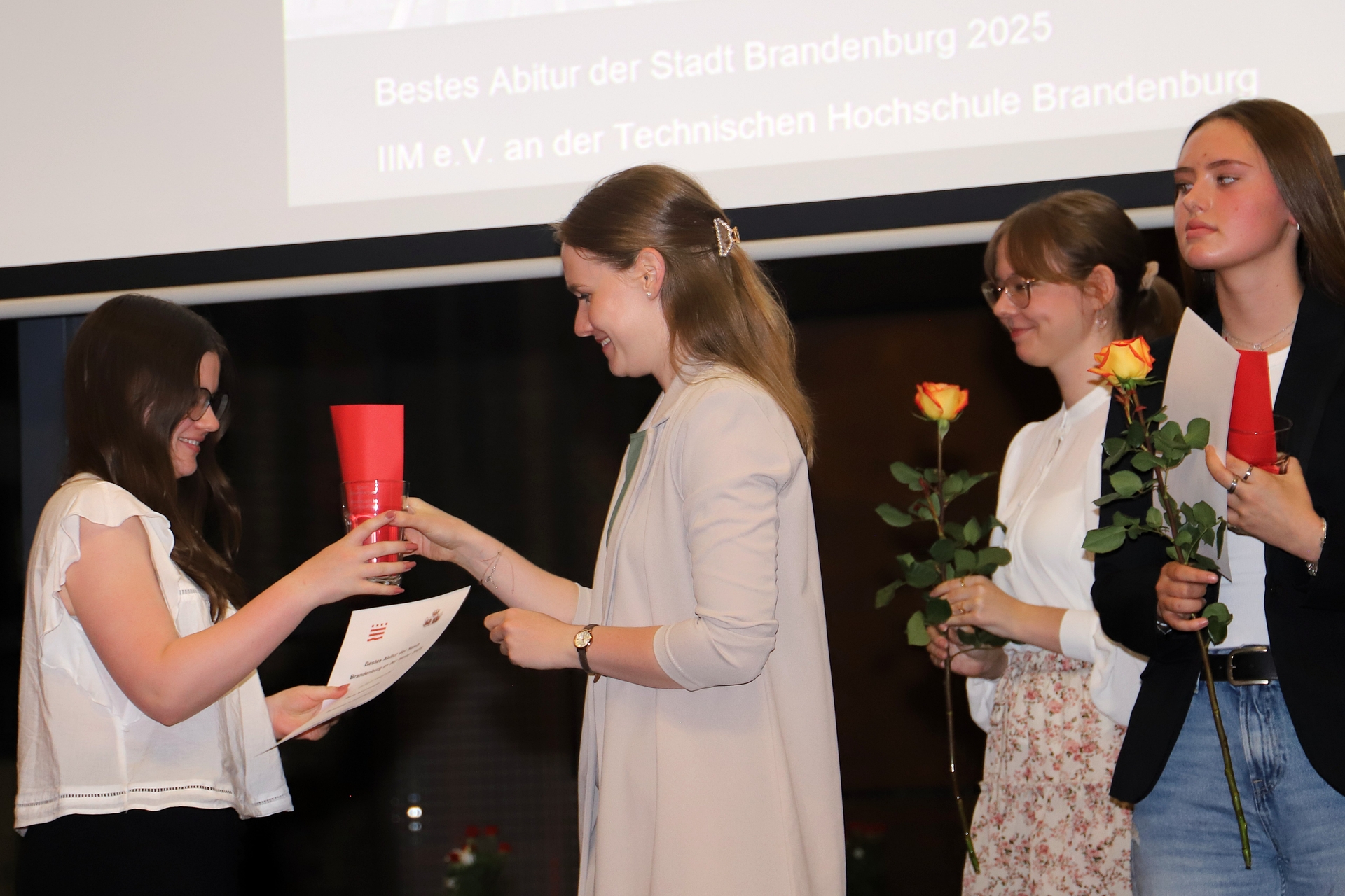 Außerdem wurden die Besten in 13 Leistungsfächern gekürt, zu denen Oskar Konrad Grunicke im Fach Mathematik ebenfalls gehörte. Die ausgezeichneten Abiturientinnen und Abiturienten erhielten neben einem Preisgeld ein Trinkglas mit der Gravur ihres Namens und der Auszeichnung „Abiturientenpreis 2025“. Die Gläser wurden mithilfe eines Lasers in der Offenen Werkstatt der THB graviert.