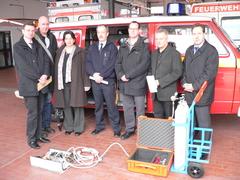 Auf dem Gruppenbild von links nach rechts: Beigeordneter Michael Brandt, Dr. Karl-Heinz Grütte, Dr. Gundel Schirrmeister, Uwe Hohn (stellv. Amtsleiter und Leiter Leitstelle), Dr. Martin Hochstatter, Peter Regorius, Thorsten Voelz (Hesto-Med GmbH)