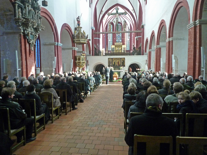 Am Montag, 25.11.2013, haben mehrere Hundert Trauergäste im Brandenburger Dom St. Peter und Paul Abschied von Dr. Martin Martiny genommen. Der langjährige und verdienstvolle Domkurator war am 14.11.2013 im Alter von 71 Jahren verstorben. Im bis auf den letzten Platz gefüllten Gotteshaus hatten sich neben den Familienangehörigen und hochrangigen Kirchenvertretern, wie Domdechant Prof. Dr. Wolfgang Huber, auch zahlreiche Vertreter aus Politik, Wirtschaft und Gesellschaft versammelt. Dazu zählten unter anderem Landtagspräsident Gunter Fritsch, Ministerpräsident a.D. Dr. Manfred Stolpe und Oberbürgermeisterin Dr. Dietlind Tiemann, die am aufgebahrten Sarg eine weiße Rose niederlegte.