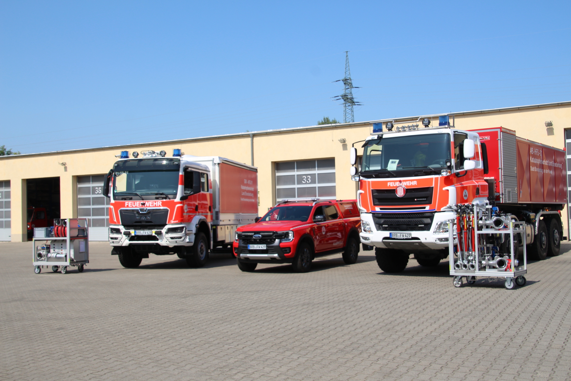 Das sogenannte Hochleistungsfördersystem (HFS) ist ab sofort einsatzbereit und kann bei Großbränden, Vegetationsbränden oder Hochwasserlagen bis zu 6.000 Liter Wasser pro Minute über bis zu zwei Kilometer zum Brandherd fördern.