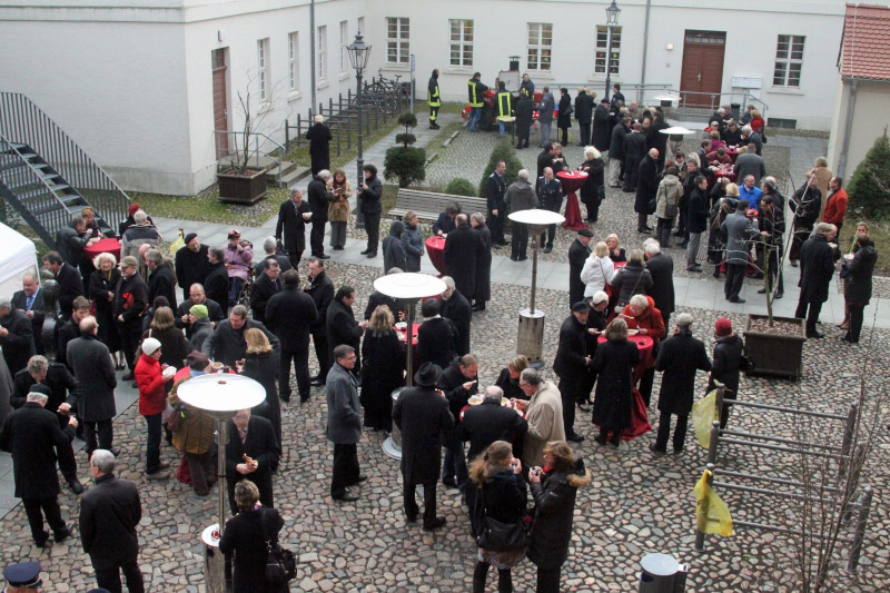 Im Anschluss an den offiziellen Festakt im Rolandsaal feierten zahlreiche Brandenburgerinnen und Brandenburger gemeinsam mit ihrer Oberbürgermeisterin und den Gästen im Hof des Altstädtischen Rathauses.