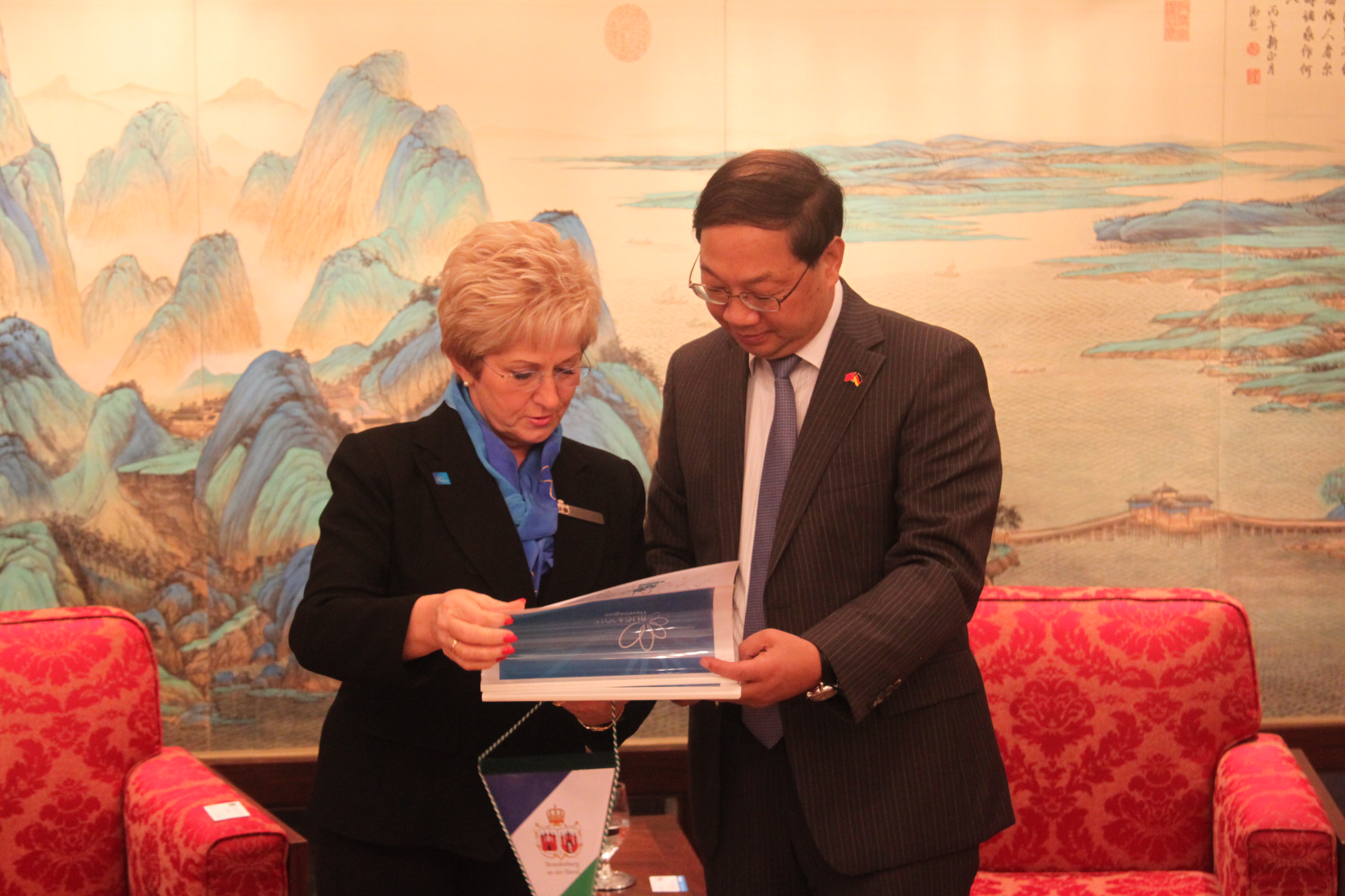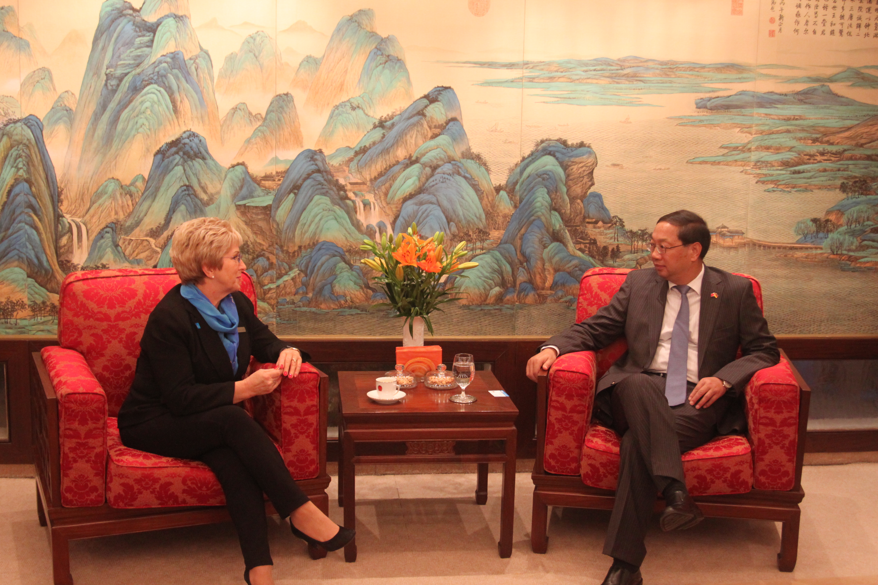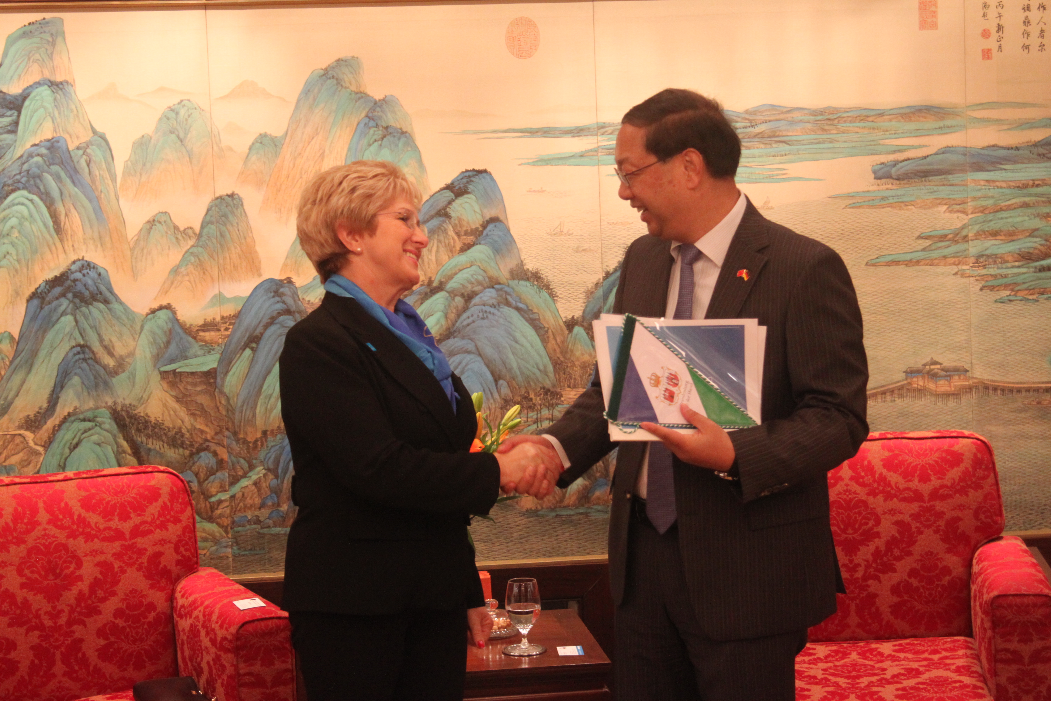 Aus Anlass der am 18. April beginnenden und bis Oktober 2015 stattfindenden Bundesgartenschau 2015 fand am 12. Januar 2015 ein persönliches Gespräch der Oberbürgermeisterin von Brandenburg an der Havel Dr. Dietlind Tiemann und Chinas Botschafter S.E. Shi Mingde in der chinesischen Botschaft in Berlin statt. Die Internationalisierung Brandenburg´s, die Bewerbung der sich mit der BUGA 2015 in zwei Bundesländern ergebenden wirtschaftlichen und touristischen Kooperationsmöglichkeiten aber auch die direkte Wirtschaftsförderung standen im Mittelpunkt des sehr herzlich und im Ergebnis erfolgreich geführten Gesprächs. Die Intensivierung der wirtschaftlichen Beziehungen zu den neuen Bundesländern ist ein besonderes Anliegen Chinas, betonte der Botschafter, der zugleich auf seine eigene Geschichte in Deutschland und seine Erfahrungen als junger Diplomat verwies. S.E. Botschafter Shi sagte nicht nur die Teilnahme an der Eröffnungsveranstaltung mit Bundespräsident Joachim Gauck, sondern die Bereitschaft zu einem persönlichen Besuch zum Kennenlernen der Region und Stadt zu.