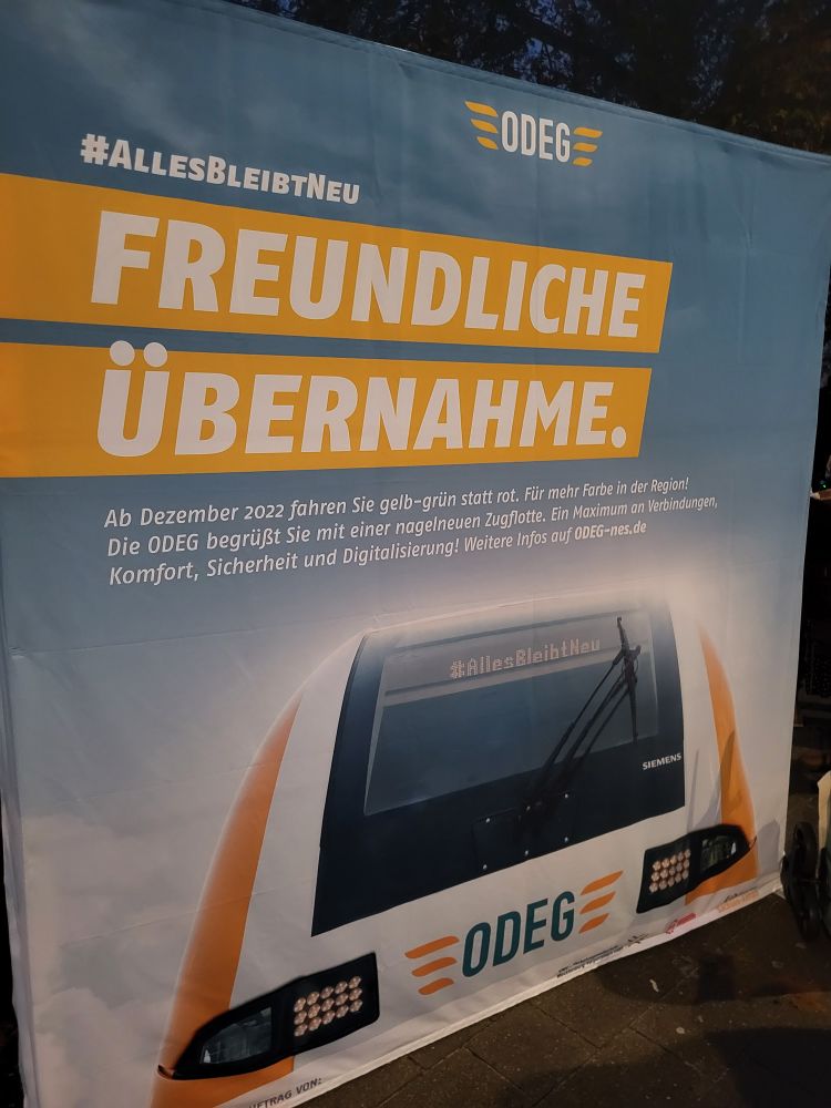 Zum Fahrplanwechsel am Sonntag, dem 11. Dezember 2022, nimmt die ODEG – Ostdeutsche Eisenbahn GmbH – den Betrieb von sechs neuen Linien im Netz Elbe-Spree im Auftrag der Länder Mecklenburg-Vorpommern, Brandenburg, Berlin und Sachsen-Anhalt auf. So auch auf dem Streckennetz des RE1 zwischen Magebdurg und Cottbus. Anlässlich dessen nahm Oberbürgermeister Steffen Scheller bereits am Freitag, 9. Dezember 2022, zur „freundlichen Übernahme“ symbolisch das „EinZugBrot“ der ODEG entgegen.