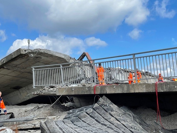 Nach langer Vorbereitung wurde am Mittwoch, 19.05.2021, in Brandenburg an der Havel die seit Dezember 2019 gesperrte marode Brücke „20. Jahrestag“ erfolgreich gesprengt.