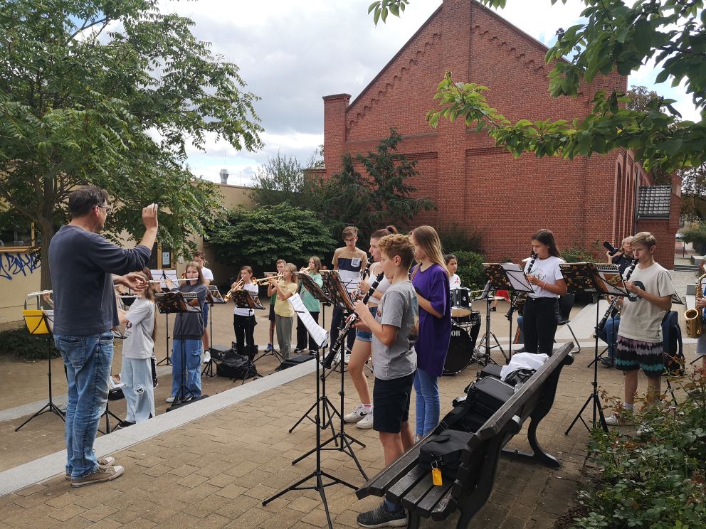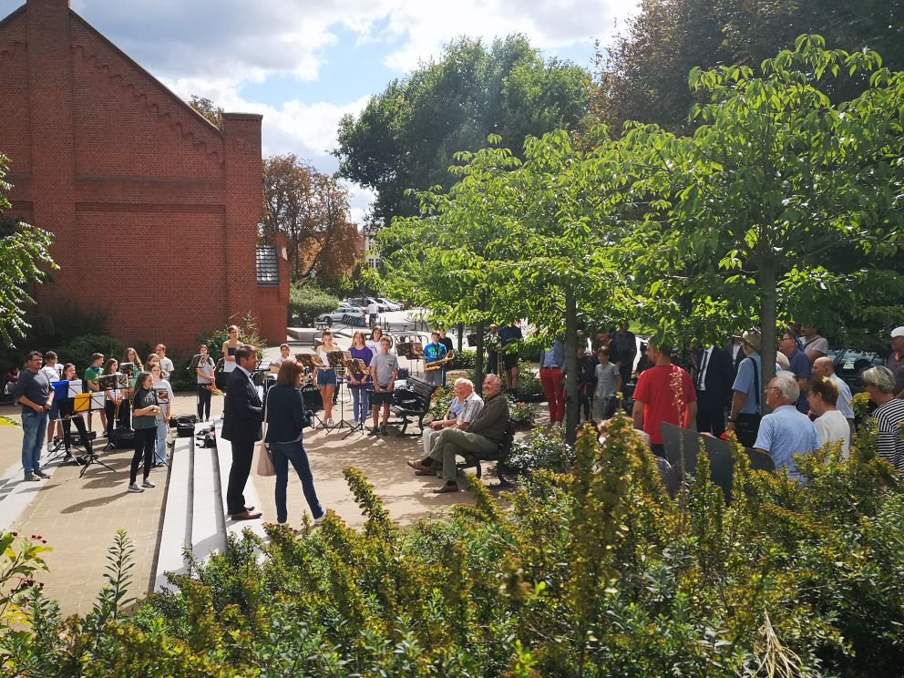 Mit dabei waren auch Schüler des Dom-Gymnasiums, die auf ihrem Schulweg nun wieder ein paar Meter einsparen können. Die Klasse 8b bot dabei die musikalische Untermalung der Veranstaltung.