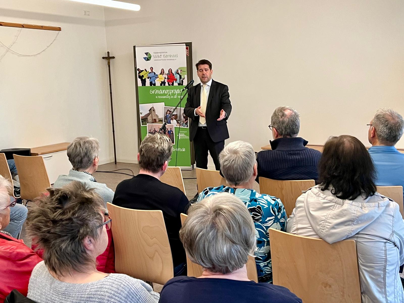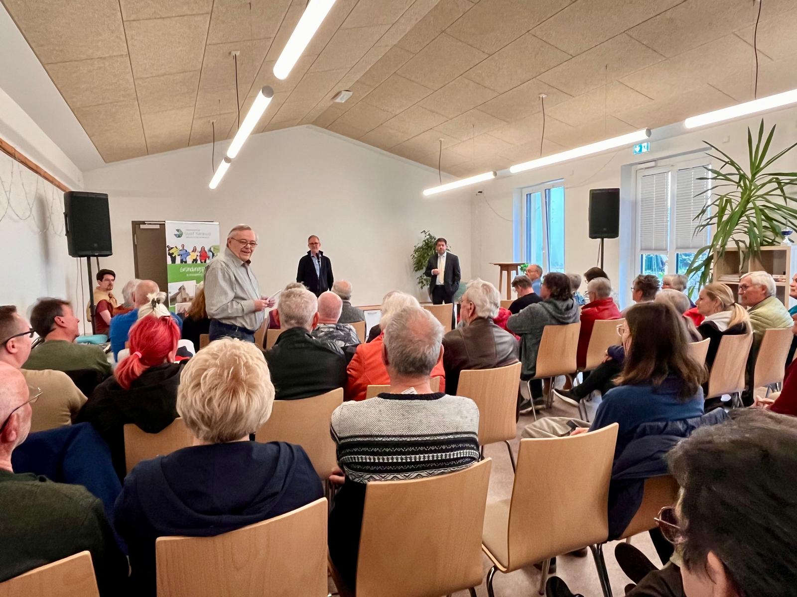 Rund 60 Einwohnerinnen und Einwohner aus der Quenz- und Walzwerksiedlung sowie aus der Klingenbergsiedlung begrüßte Oberbürgermeister Steffen Scheller am Mittwoch, 9. April 2025, in der Sankt-Bernhard-Gemeinschaftskirche in der Hannoverschen Straße. Eingeladen hatte der Bürgerbeirat Quenz unter dem Vorsitzenden Hans-Martin Richter.
