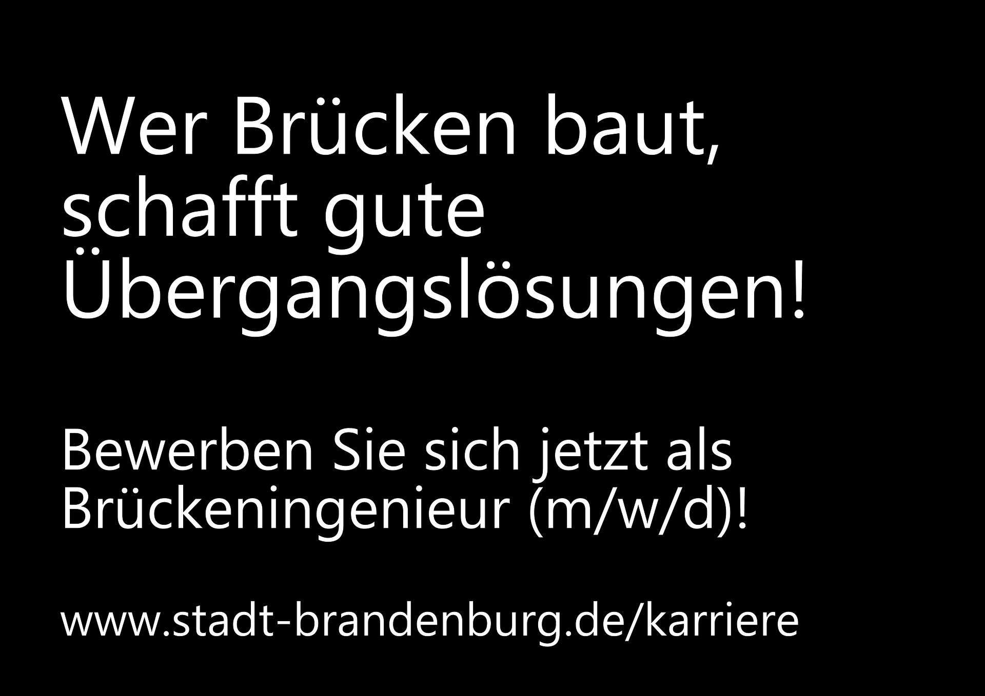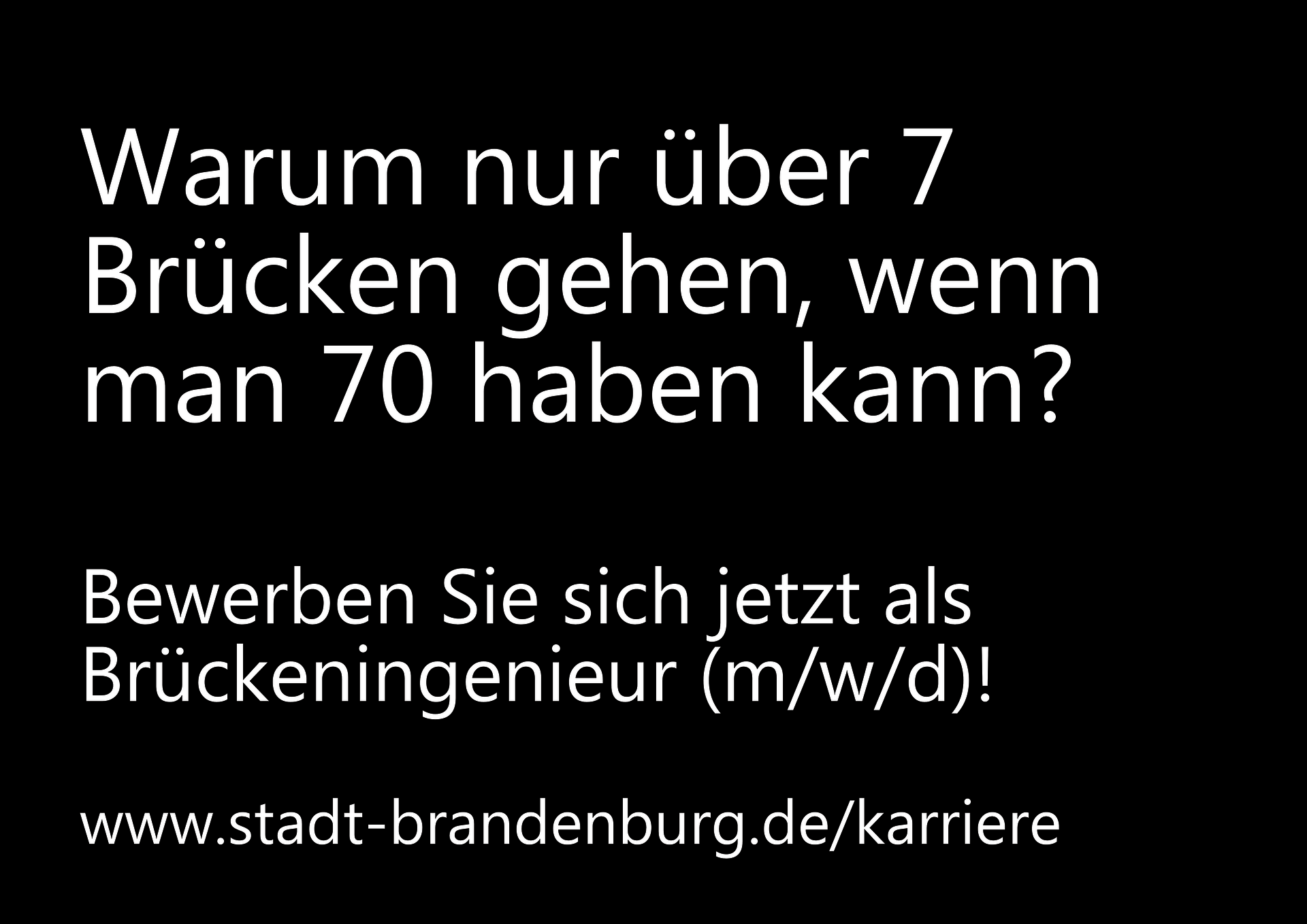Die Stadt Brandenburg an der Havel sucht aktuell einen Brückeningenieur (m/w/d) und versucht auf etwas ungewöhnlichen Wegen die Aufmerksamkeit potentieller Bewerberinnen und Bewerber zu wecken.