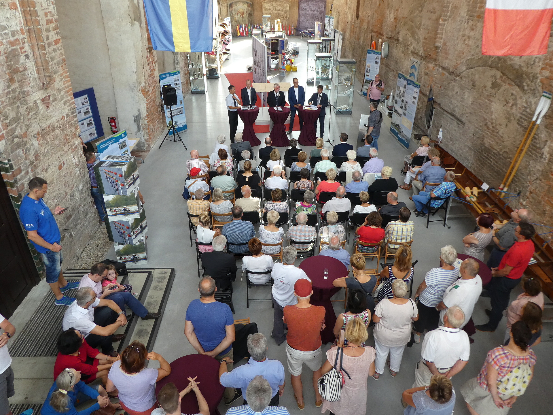 Als idealer Ort für die Buchpräsentation diente die Johanniskirche am Salzhofufer, wo seit Ende Juni 2019 eine Ausstellung zur Geschichte der weltweit bekannten Brandenburger Naturregattastrecke gezeigt wird. In seinen kurzen Begrüßungsworten hob Oberbürgermeister Steffen Scheller, der auch das Jubiläums-Festkomitee leitet, die große und weit über die Grenzen der Stadt hinaus gehende Bedeutung dieser Sportanlage hervor, die im Sommer 1969 nach nur knapp zweijähriger Bauzeit eingeweiht wurde. „Olympiasieger, Weltmeister und Deutsche Meister geben sich heutzutage auf unserer Regattastrecke die Klinke in die Hand. Wie aber alles anfing und was für eine beeindruckende Erfolgsgeschichte dann in den letzten 50 Jahren entstanden ist, das alles kann man nun selbst erfahren und nachlesen“, sagt das Stadtoberhaupt zu den knapp 100 Gästen, die seiner Einladung zur Buchpräsentation gefolgt waren.