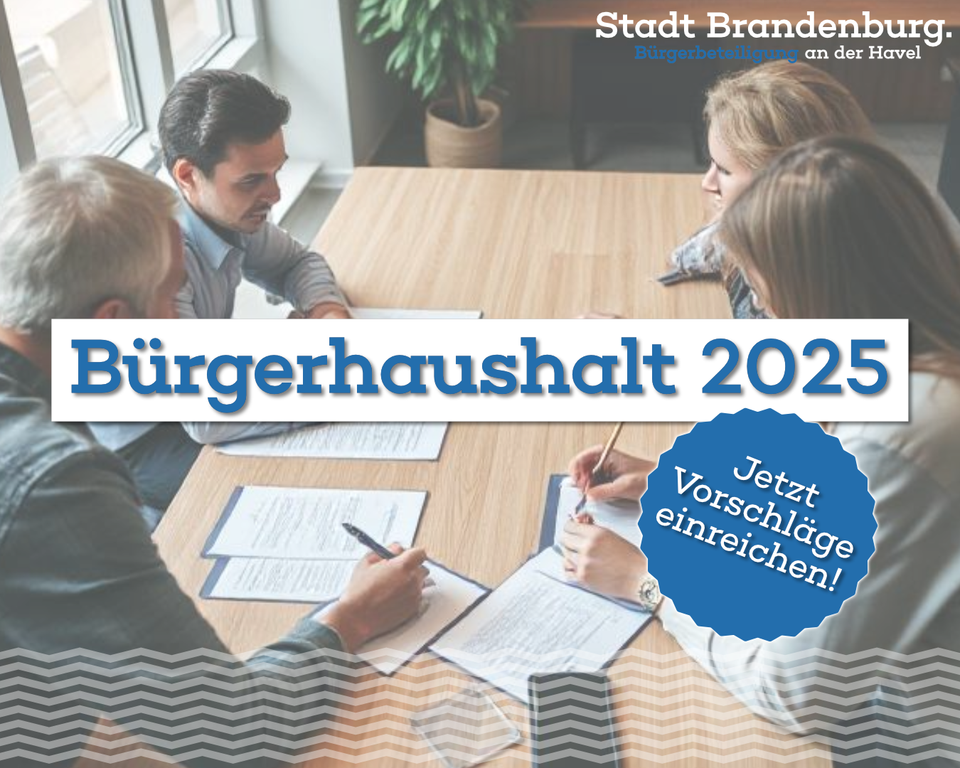 Noch bis zum 16. Mai 2025 können Einwohnerinnen und Einwohner ihre Gedanken für ein Projekt zur Realisierung mit dem Budget des Bürgerhaushaltes für das Jahr 2025 online einreichen oder zu Papier bringen. Hier finden Sie die Bestimmungen für die Vorschläge. Ob die Bank an einem schönen Ort zum Verweilen oder Projekte, die Brandenburgerinnen und Brandenburger zusammenführen. Wir freuen uns auf Ihre Vorschläge!