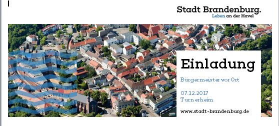 Bürgermeister Steffen Scheller lädt alle interessierten Bürgerinnen und Bürger des Ortsteils Eigene Scholle am Donnerstag, dem 7. Dezember 2017 um 18:00 Uhr in das Turnerheim, Am Turnerheim 17A zu einer neuen Veranstaltungsreihe „Bürgermeister vor Ort“ ein, um mit Ihnen gemeinsam und mit Fachkollegen unter anderem aus den Bereichen Umwelt, Verkehr und Ortsteilsentwicklung, ins Gespräch zu kommen.