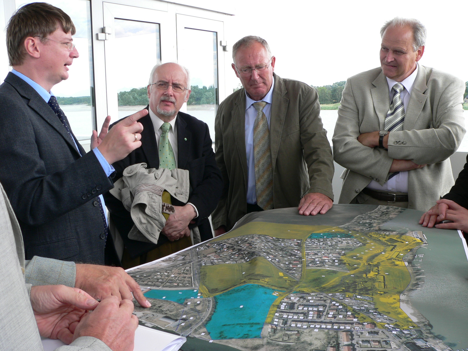 Zum Auftakt ihrer Informationsreise durch die Havelregion, die sich um die Ausrichtung der Bundesgartenschau 2015 beworben hat, besuchte eine 5-köpfige Expertendelegation der Deutschen Bundesgartenschau-Gesellschaft mbH (DBG) am Mittwoch, 25.07.2007, die Stadt Brandenburg an der Havel. Gemeinsam mit Prof. Dr. Klaus Neumann, der im Auftrag des Bewerberteams die umfangreiche Machbarkeitsstudie und die Bewerbungsunterlagen erarbeitet hat, stellte Baubeigeordneter Michael Brandt den Gästen aus Bonn das Konzept und die geplanten Veranstaltungsorte in der Havelstadt vor.
