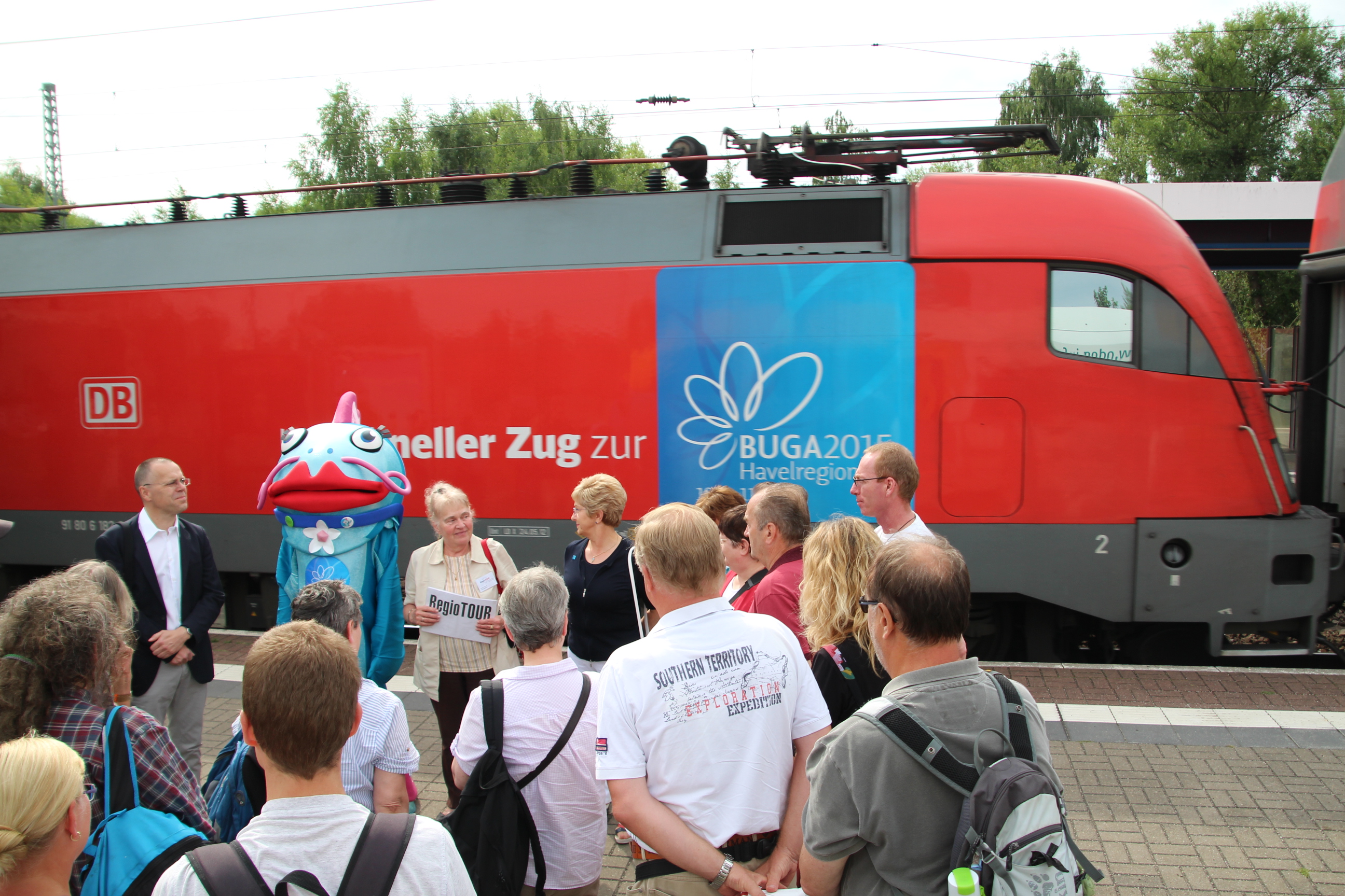 Am Mittwoch, 22.07.2015, begrüßten Oberbürgermeisterin Dr. Dietlind Tiemann und Renado Kropp, Regionalleiter Marketing der DB Regio Nordost, am Brandenburger Hauptbahnhof 20 BUGA-Karten Gewinner.