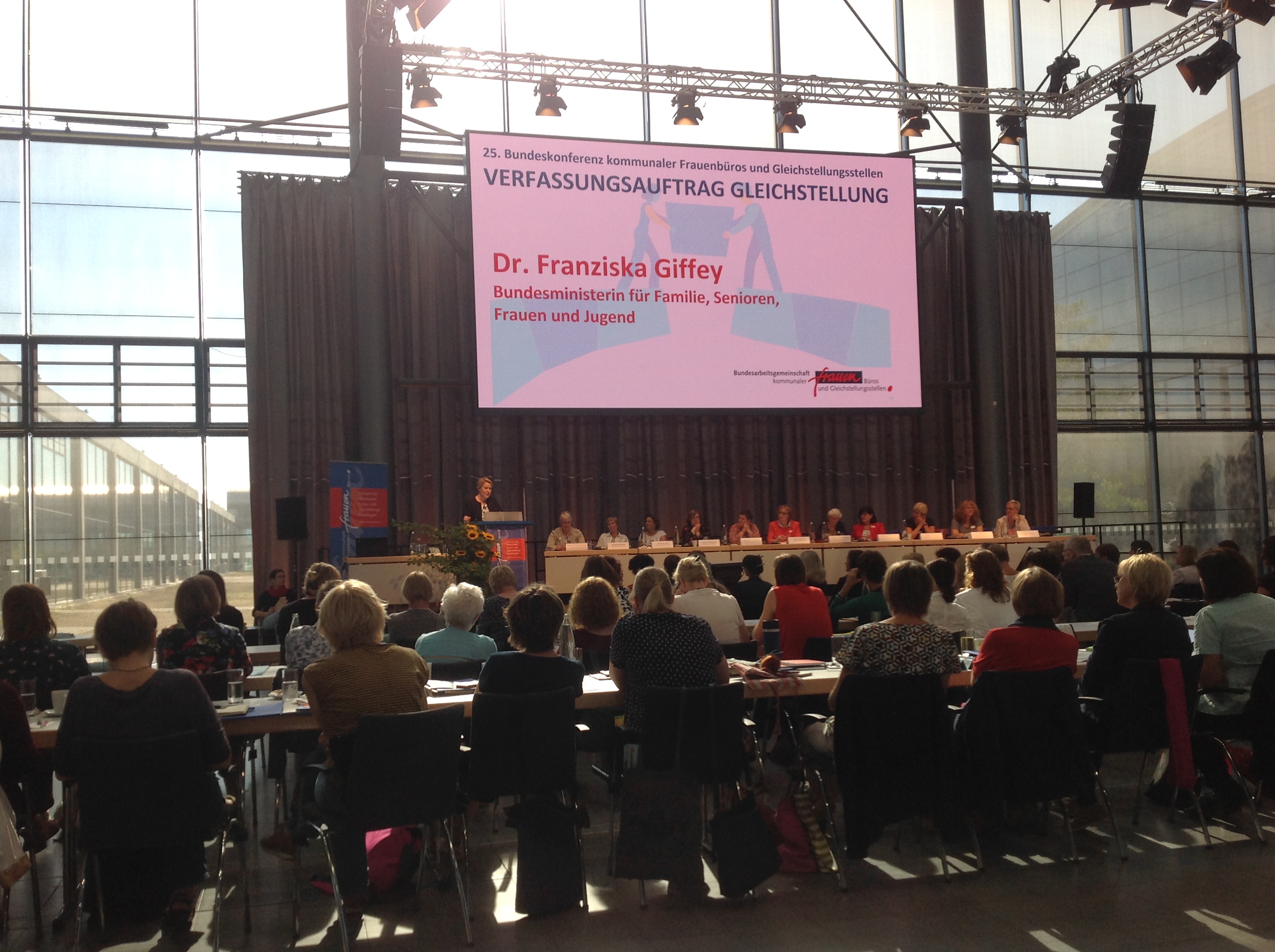 Diese Fakten machen klar: Der Nachholbedarf für die Umsetzung des Staatsziels „Gleich-berechtigung von Frauen und Männern„ ist groß. Nur eine konsequente Gleichstellungspolitik auf allen staatlichen Ebenen kann hier Abhilfe schaffen. „Frauen können alles, wenn sie die nötige Unterstützung haben. Das ist eine Aufgabe der gesamten Gesellschaft. Eine kommunale Aufgabe, eine Aufgabe der Länder und des Bundes. Dafür müssen wir noch einiges tun, und zwar gemeinsam.“, sagte Bundesminis-terin Dr. Franziska Giffey, die die Bundeskonferenz eröffnete.