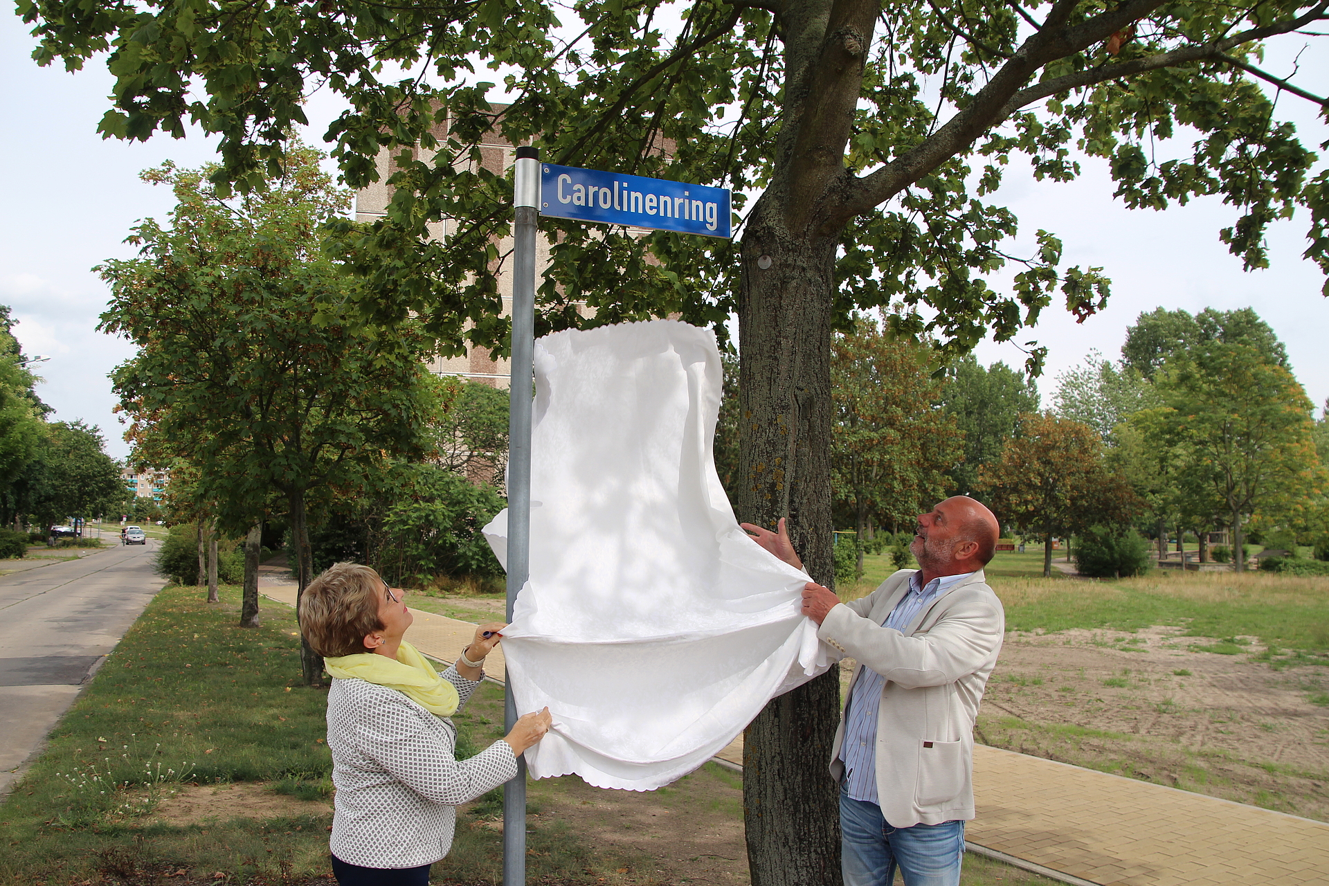 Mit der heutigen Einweihung der Straße „Carolinenring“ im Wohngebiet Brahmsstraße/Sophienstraße wurde nach weniger als 10 Monaten Bauzeit die Erschließung des Wohngebietes erfolgreich abgeschlossen.