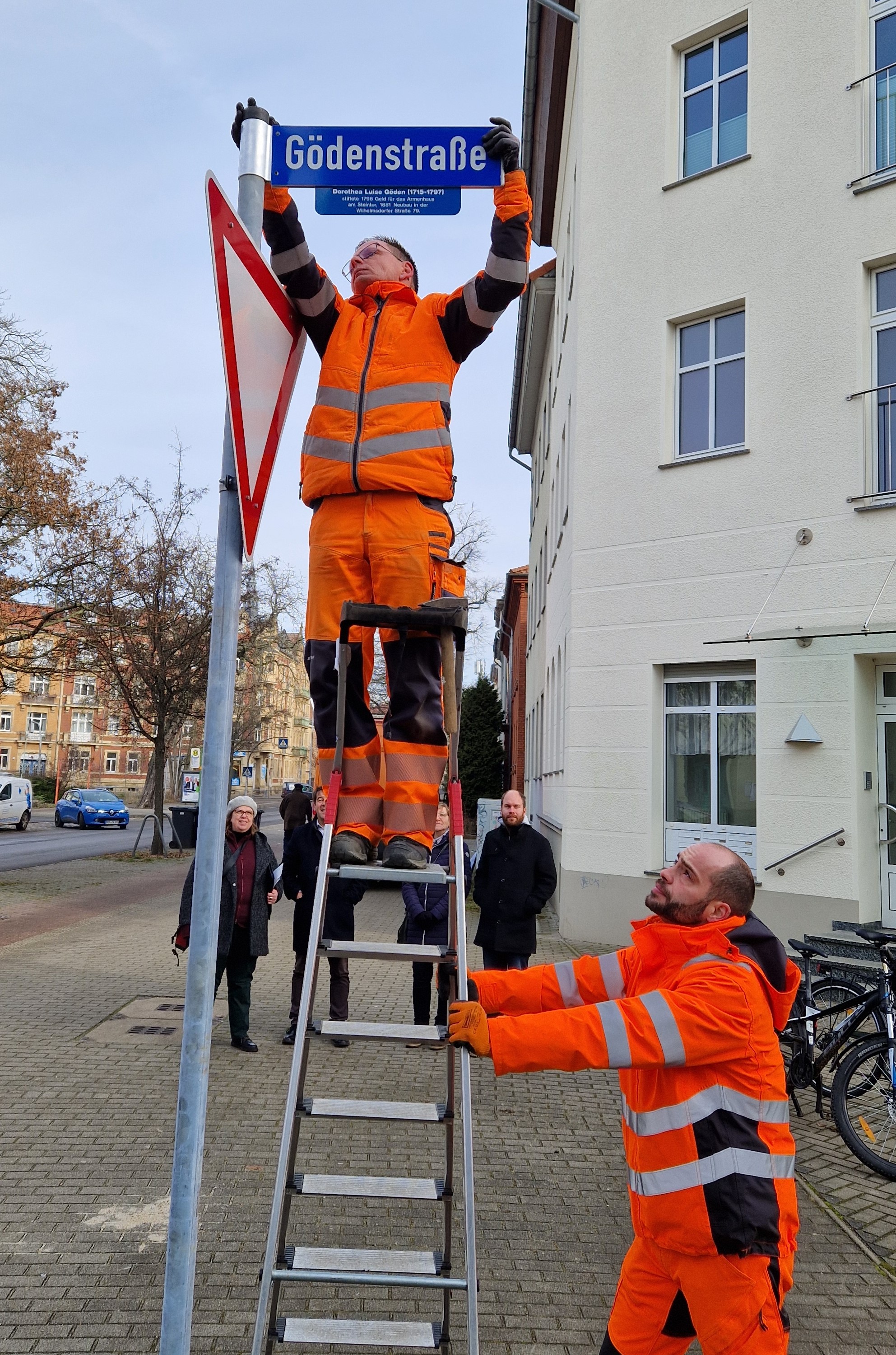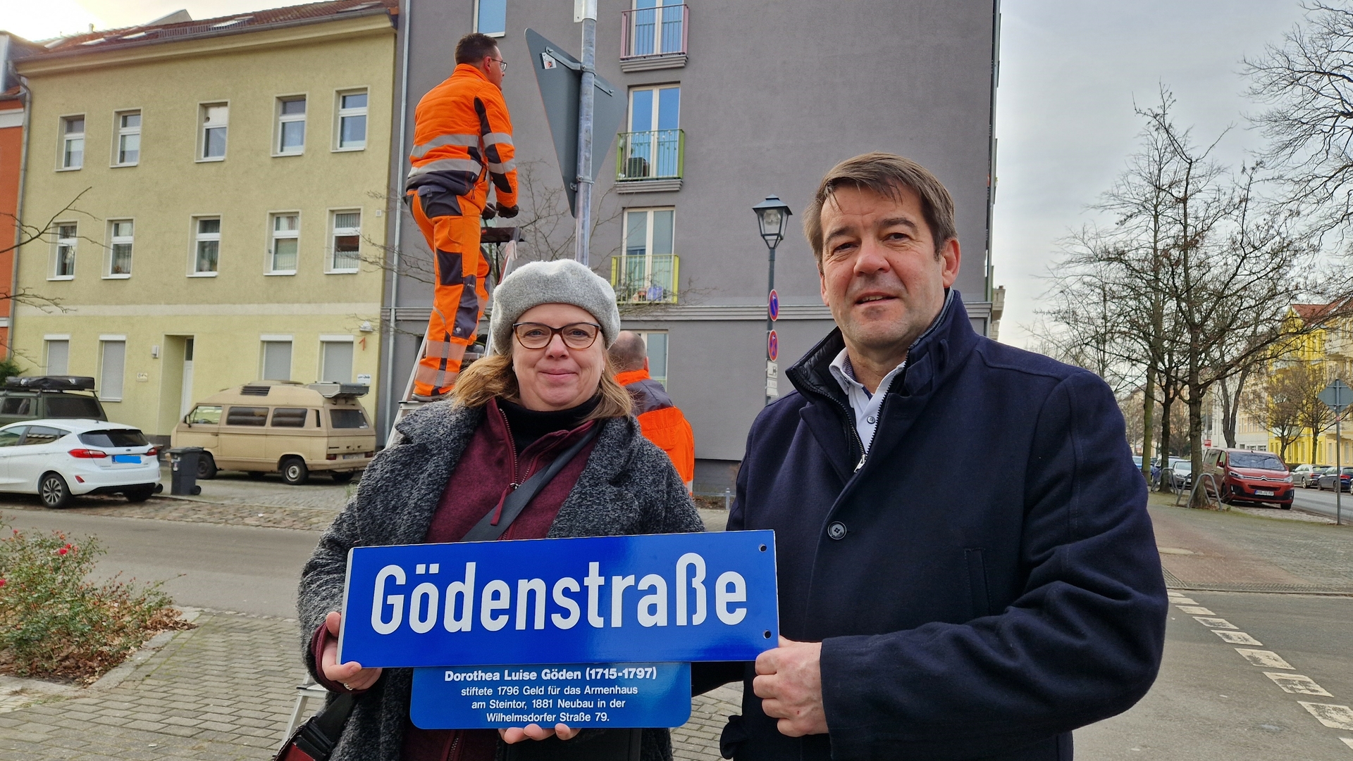 Am heutigen Mittwoch hat Oberbürgermeister Steffen Scheller an der Gödenstraße / Einmündung Wilhelmsdorfer Straße Zusatzbeschilderungen zu fünf Namenspatinnen von Straßen in der Wilhelmsdorfer Vorstadt der Öffentlichkeit übergeben.