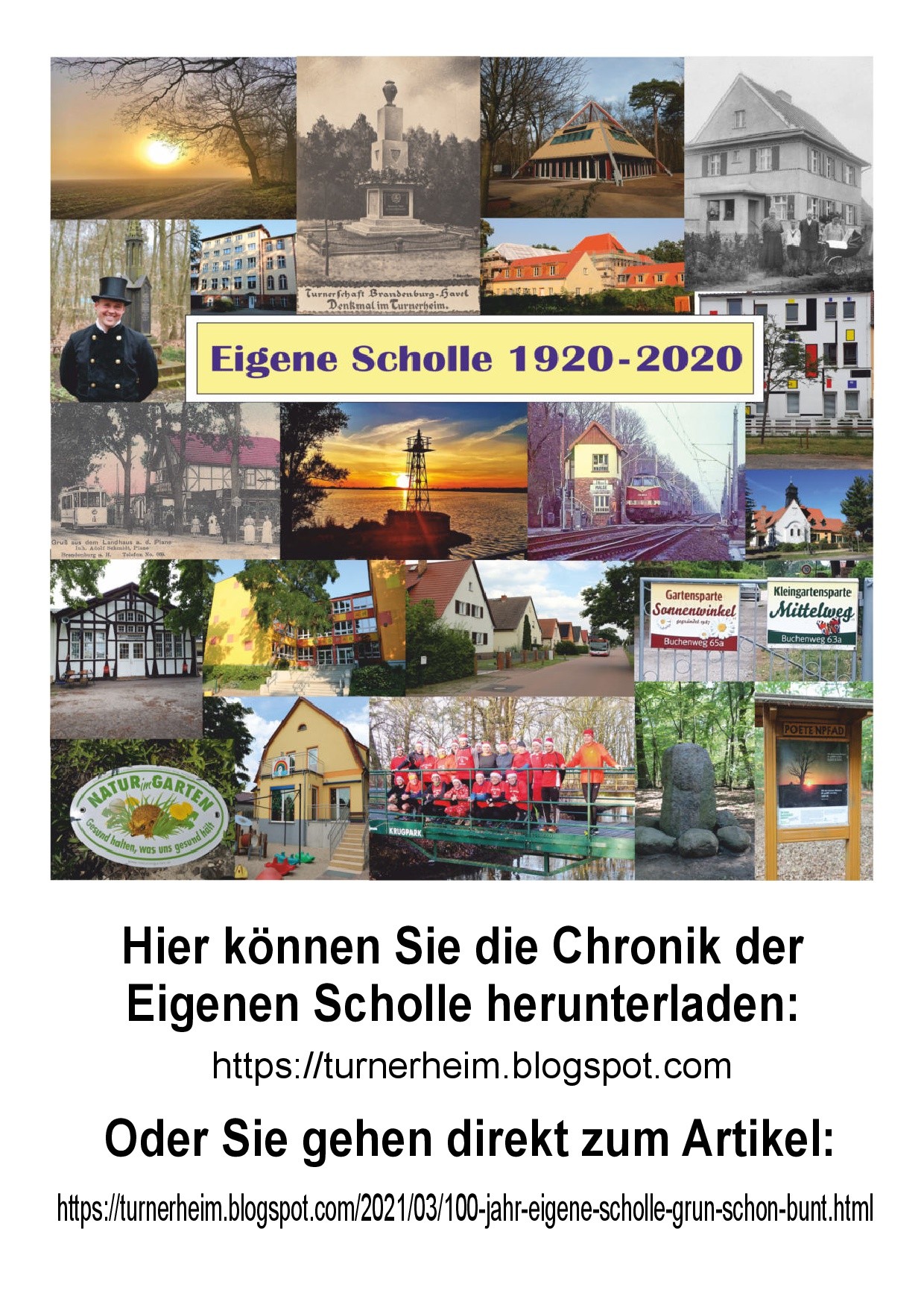 Anlässlich zum 100-jährigen Bestehen der Eigenen Scholle im Oktober 2020 hat der Bürgerbeirat eine Chronik „Eigene Scholle 1920 – 2020“ herausgegeben. Darin werden die Anfänge auf kargen Sandboden bis zur beliebten Eigenheimsiedlung dokumentiert.