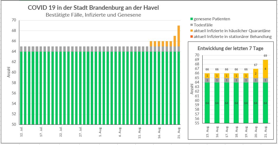 COVID-19-Fallzahlen in der Stadt Brandenburg an der Havel, Stand: 21.08.2020, 10:00 Uhr: