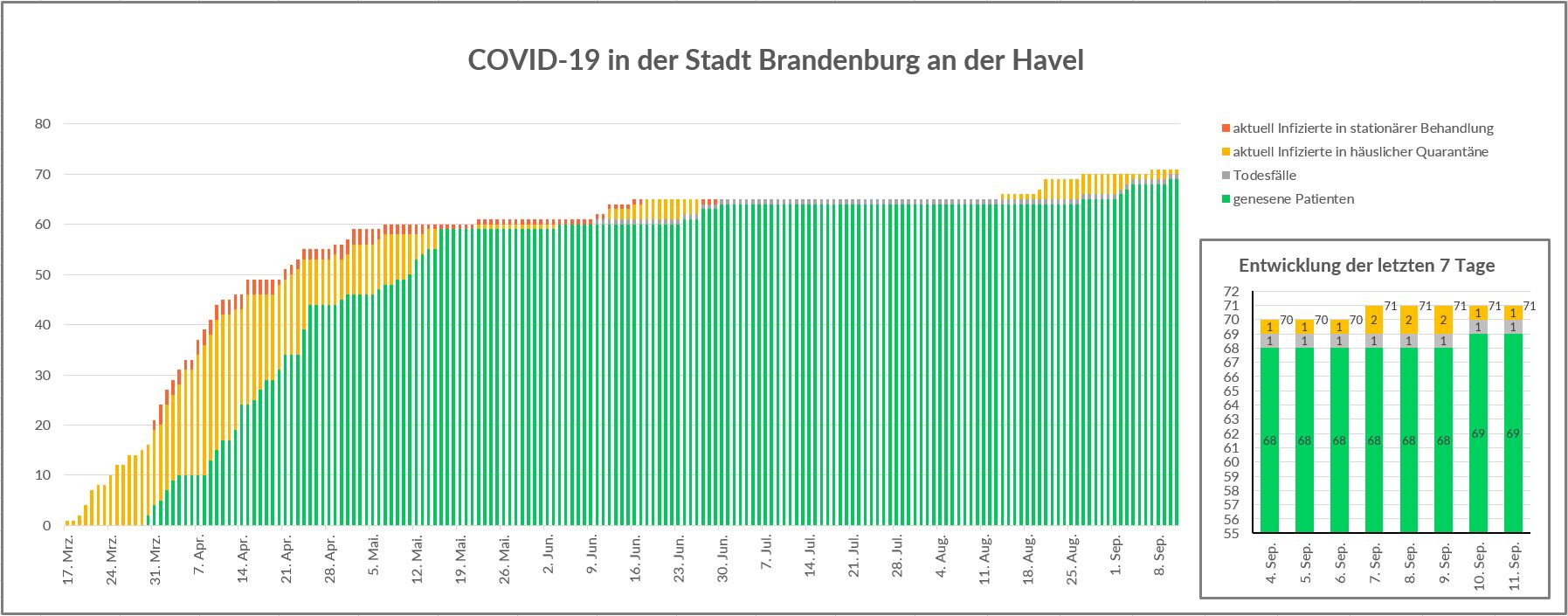 COVID-19-Fallzahlen in der Stadt Brandenburg an der Havel, Stand: 11.09.2020, 10:00 Uhr: