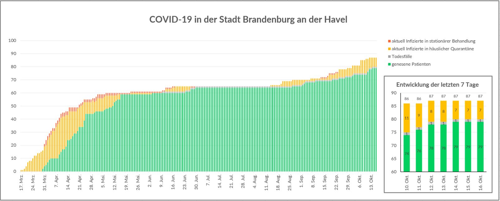 COVID-19-Fallzahlen in der Stadt Brandenburg an der Havel, Stand: 16.10.2020, 12:00 Uhr: