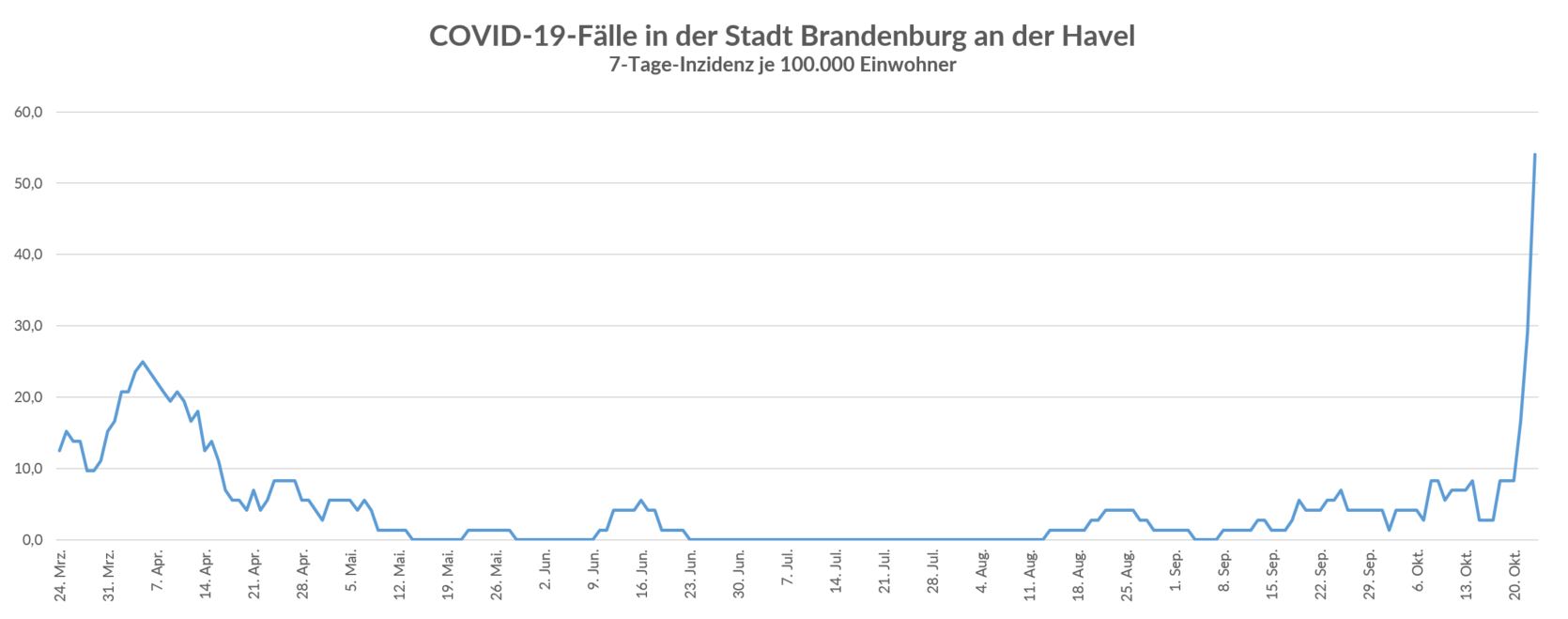COVID-19-Fallzahlen in der Stadt Brandenburg an der Havel, Stand: 23.10.2020, 08:30 Uhr: