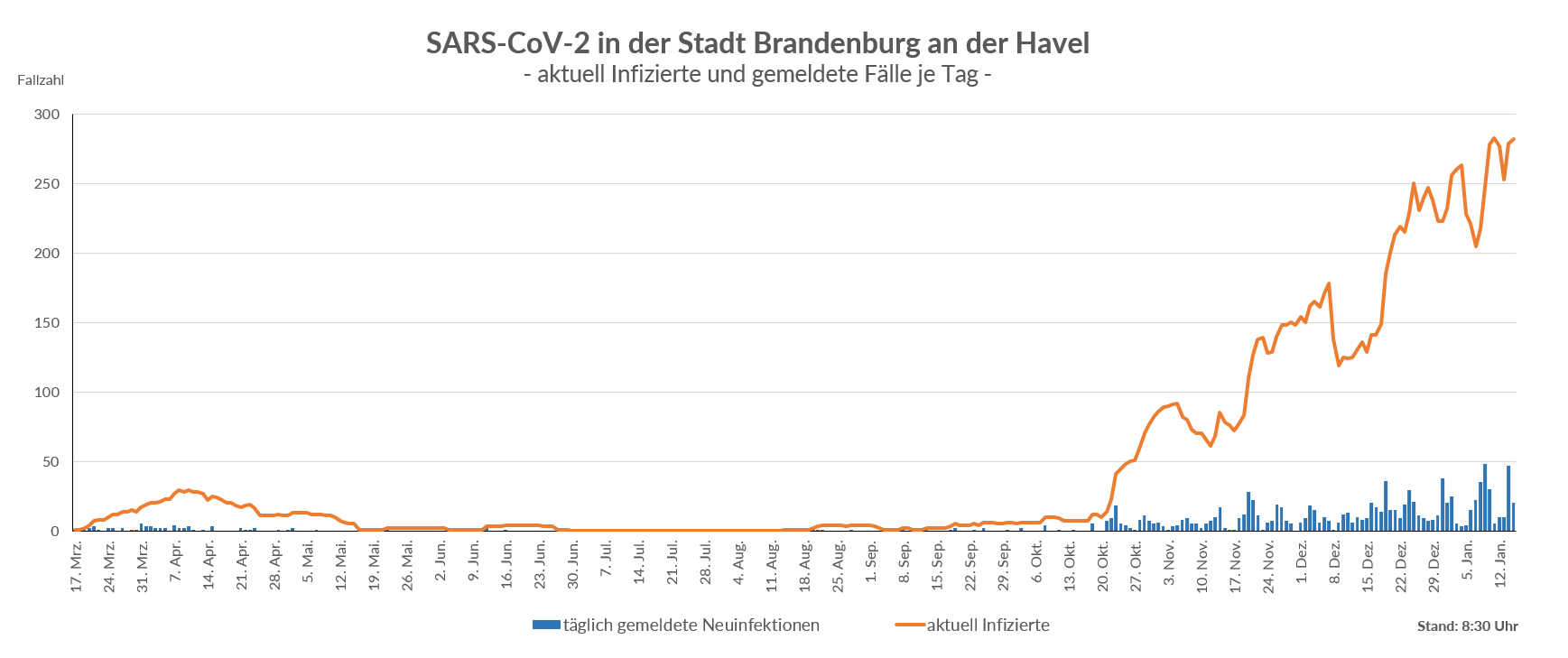 Die aktuellen Fallzahlen werden täglich unter www.stadt-brandenburg.de/coronavirus veröffentlicht.