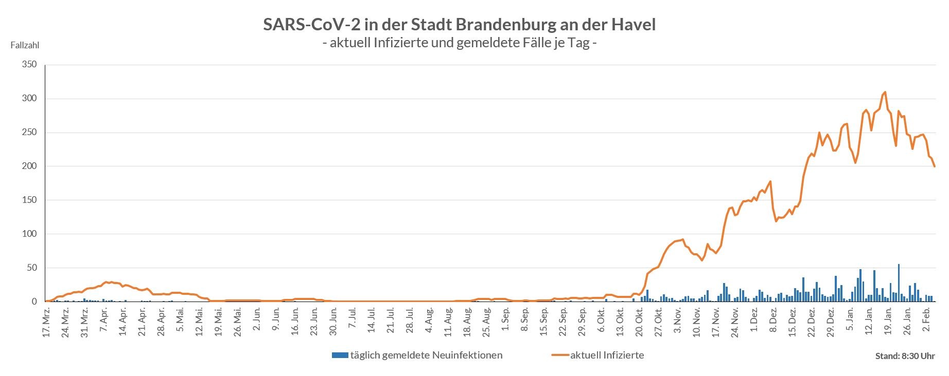 Die aktuellen Fallzahlen werden täglich unter www.stadt-brandenburg.de/coronavirus veröffentlicht.