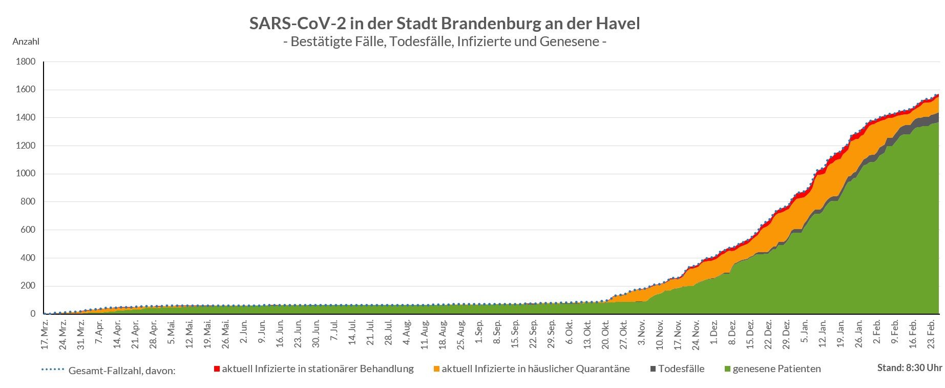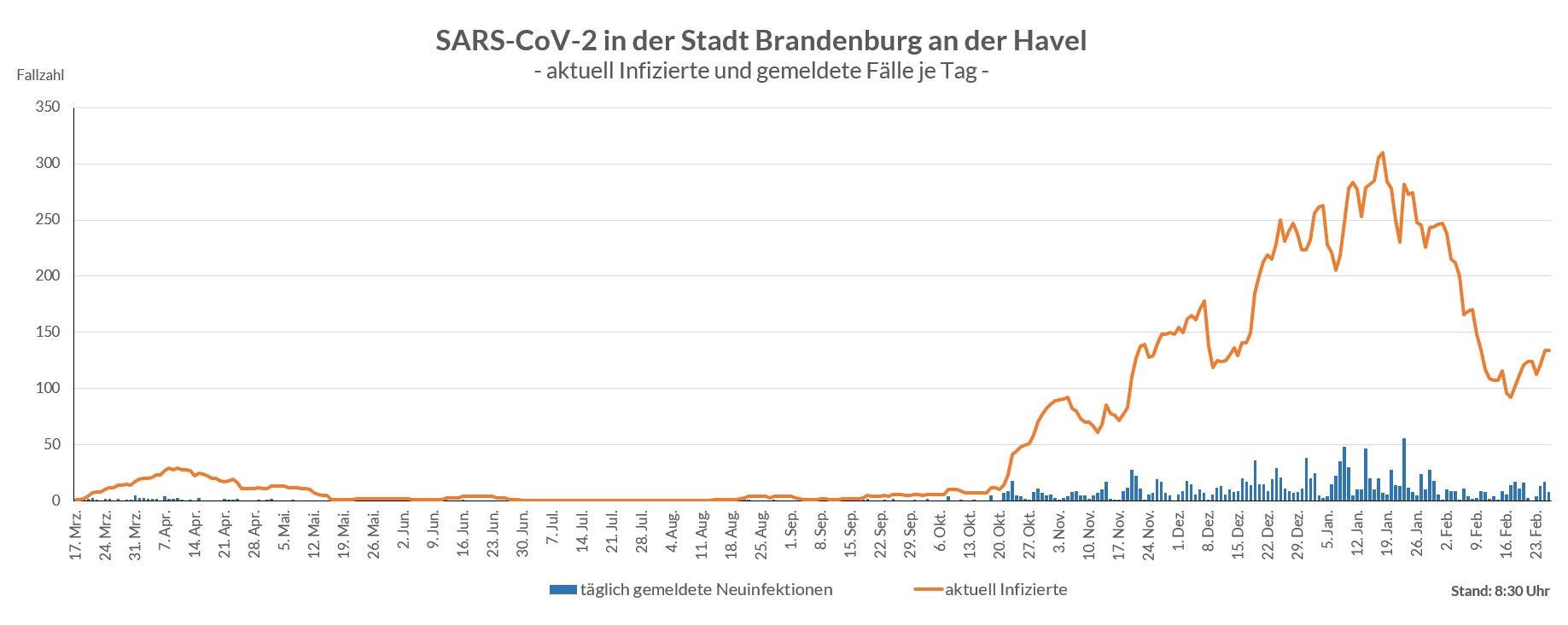 Das Gesundheitsamt der Stadt Brandenburg an der Havel informiert über die aktuellen SARS-CoV-2-Fallzahlen in der Stadt Brandenburg an der Havel, Stand: 26.02.2021, 08:30 Uhr: