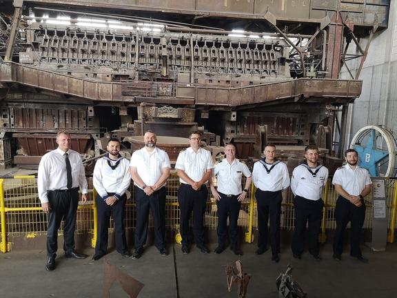 Im Rahmen einer Patenschaftsreise besuchten Kapitän und Kommandant Andreas Scheiba und sieben weitere Crew-Mitglieder der Fregatte Brandenburg am Sonntag, 26.06.2022, die Stadt Brandenburg an der Havel und waren unter anderem im Industriemuseum zu Gast. Beigeordneter Thomas Barz hat sie in Vertretung für Oberbürgermeister Steffen Scheller in Empfang genommen.