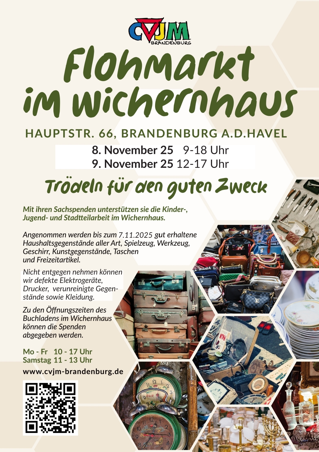 Sachspenden darüber hinaus sind auch wieder für den großen Trödelmarkt im November erwünscht, mit dessen Einnahmen die Kinder-, Jugend- und Stadtteilarbeit im Wichernhaus unterstützt wird. Bis zum 7. November können gut erhaltene Haushalts- und Kunstgegenstände, Spielzeug, Werkzeug, Geschirr und Freizeitartikel im Buchladen abgegeben werden – montags bis freitags zwischen 10:00 und 18:00 Uhr, Samstag von 11:00 bis 13:00 Uhr.