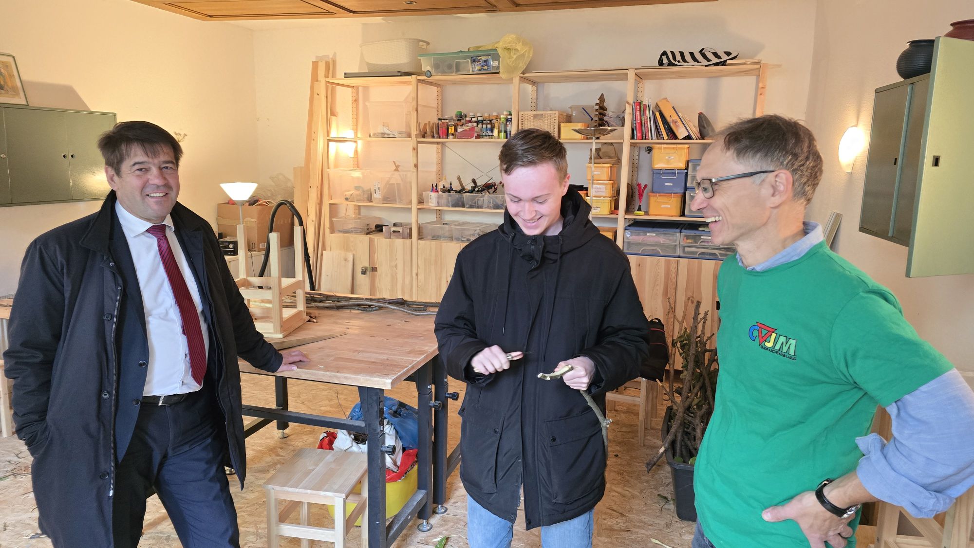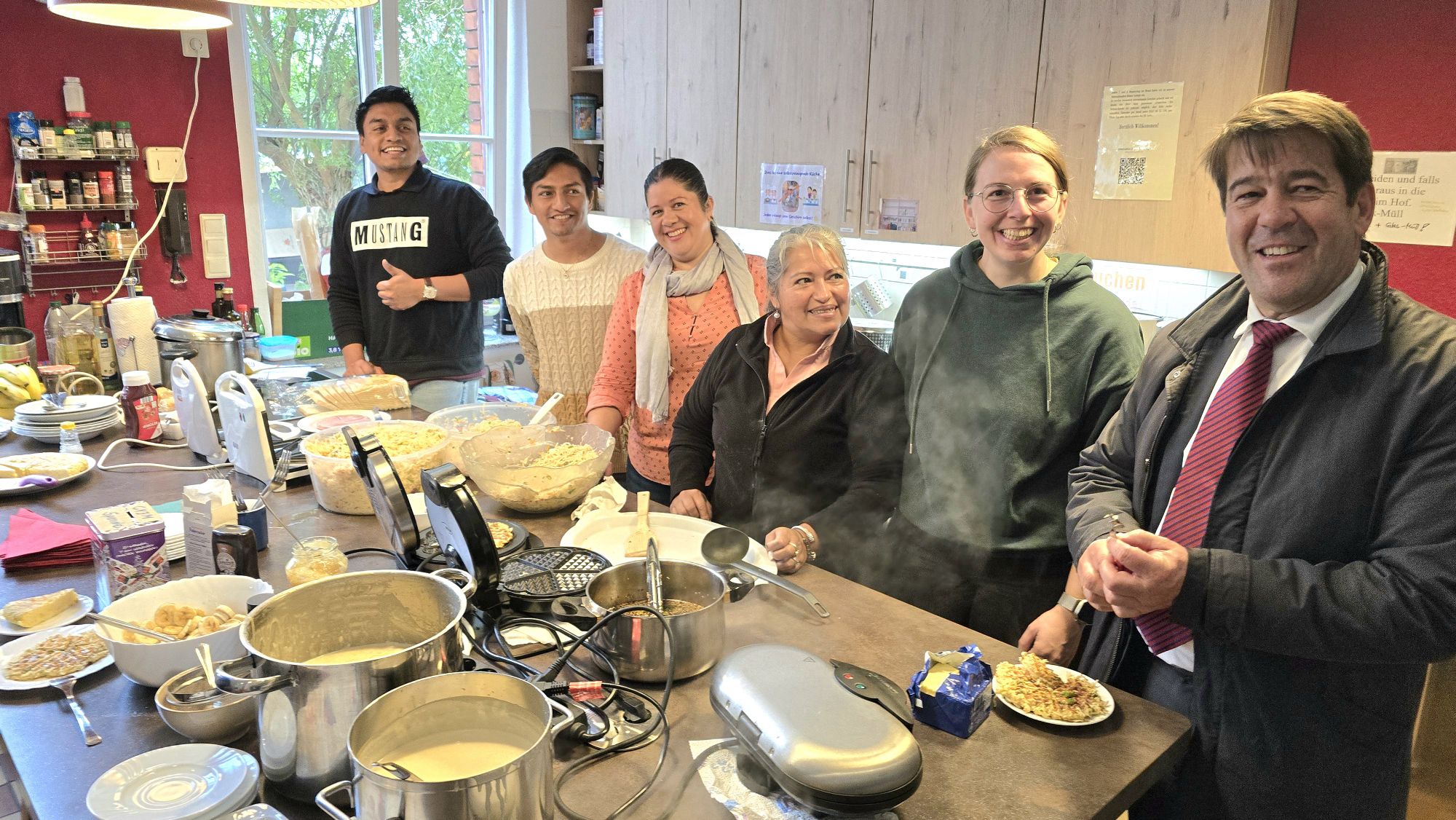 An Kuchenbasar und Tombola vorbei ging es vom bunt bestückten Hof ins Haus, wo er sich einer kurzen Hausführung mit Jugendreferent Markus Milke anschloss. In der Werkstatt wurde noch fleißig an Stöckern für Stockbrot geschnitzt, in der Küche international gekocht. Steffen Scheller ließ sich zum Probieren der frisch gebackenen Nudel-Gemüse-Waffeln überreden und schaute auch bei der Kleidertauschbörse vorbei. Drumherum war für Bastelstände, Spiele, Workshops und Kinderschminken gesorgt. Das Showprogramm auf der Hof-Bühne mündete im Live-Auftritt der Bad Belziger Band „Gsus 7“.