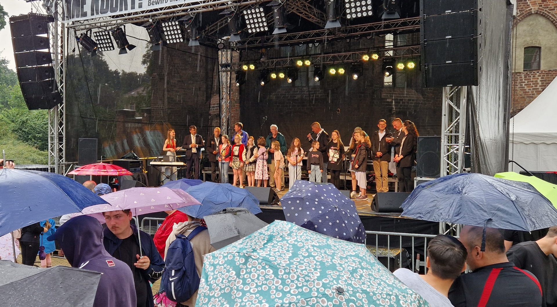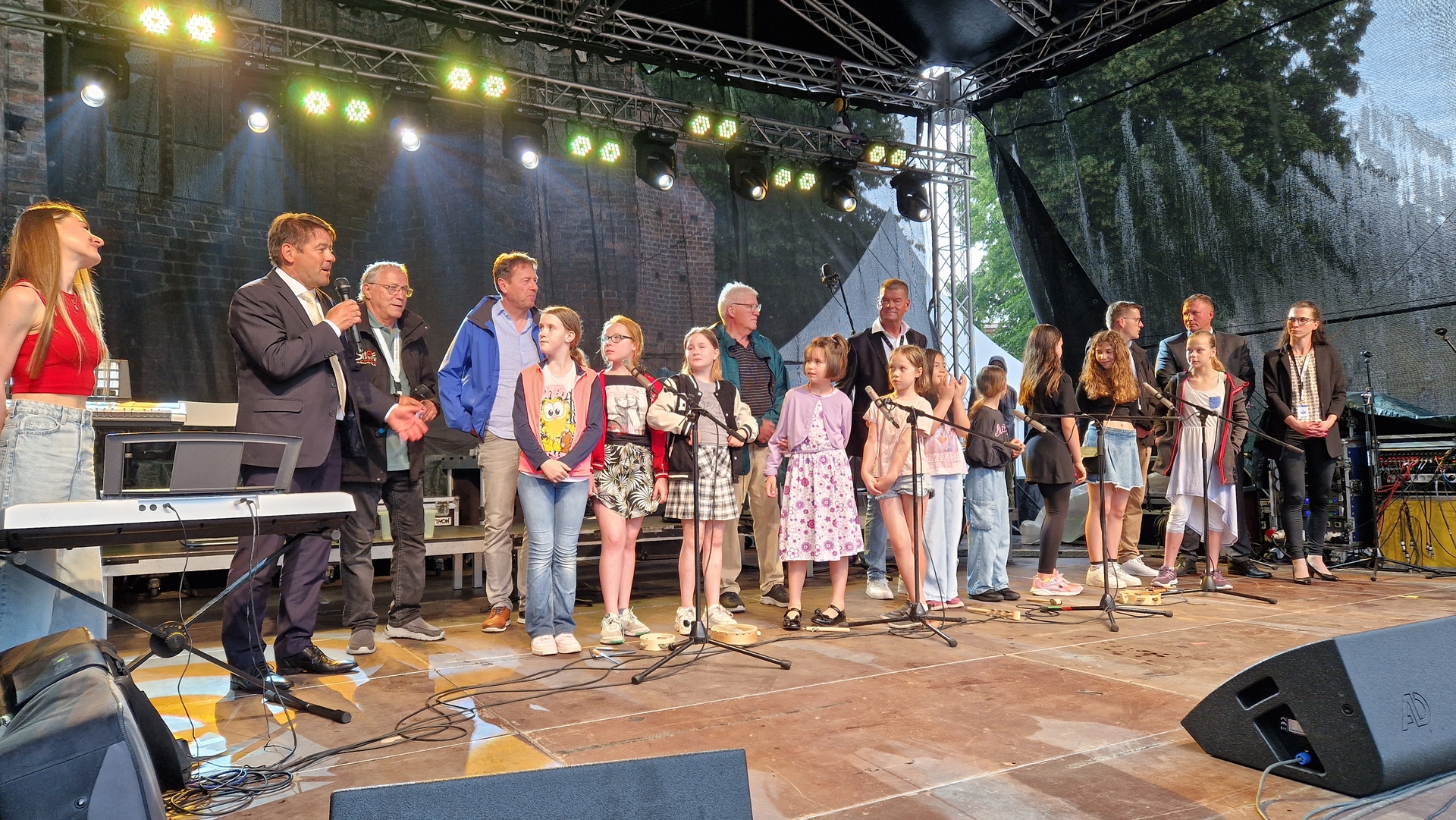 Auf der BB-Radio-Bühne an der Johanniskirche kamen am Freitagnachmittag Oberbürgermeister Steffen Scheller samt der Beigeordneten Thomas Barz und Alexandra Adel, Fest-Veranstalter Hans Günter Koch sowie die Geschäftsführung der Stadtwerke Brandenburg, Michael Woik und Gunter Haase, zur Eröffnungszeremonie zusammen, hießen die ersten Festgäste willkommen und wünschten Ihnen sowie den Zehntausenden, die noch folgen werden, viel Spaß und beste Unterhaltung. Für den musikalischen Auftakt sorgten der Chor des „Max & Moritz“-Hortes sowie der Volkschor Brandenburg.