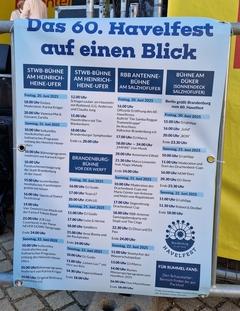 Samstag zählt die Werft-Bühne zu den 15 Spielorten der parallel zum Havelfest stattfindenden „Fête de la Musique“, ist die Havel Austragungsort des Drachenboot-Cups (ab 10:00 Uhr) und die Stadtwerke-Bühne frei für die Fundsachenversteigerung (10:00 – 12:00 Uhr) sowie das Tanzfestival „Talents of the Dance“ (16:00 Uhr) und die Fanta-4-Tribute-Band „Vier gewinnt“ ab 19:00 Uhr. Rund geht es am Samstagabend auch auf der RBB-Antenne-Brandenburg-Bühne, wenn um 20:30 Uhr „The Clogs“ loslegen und im Anschluss die DJs Dissn und Pasi auflegen.