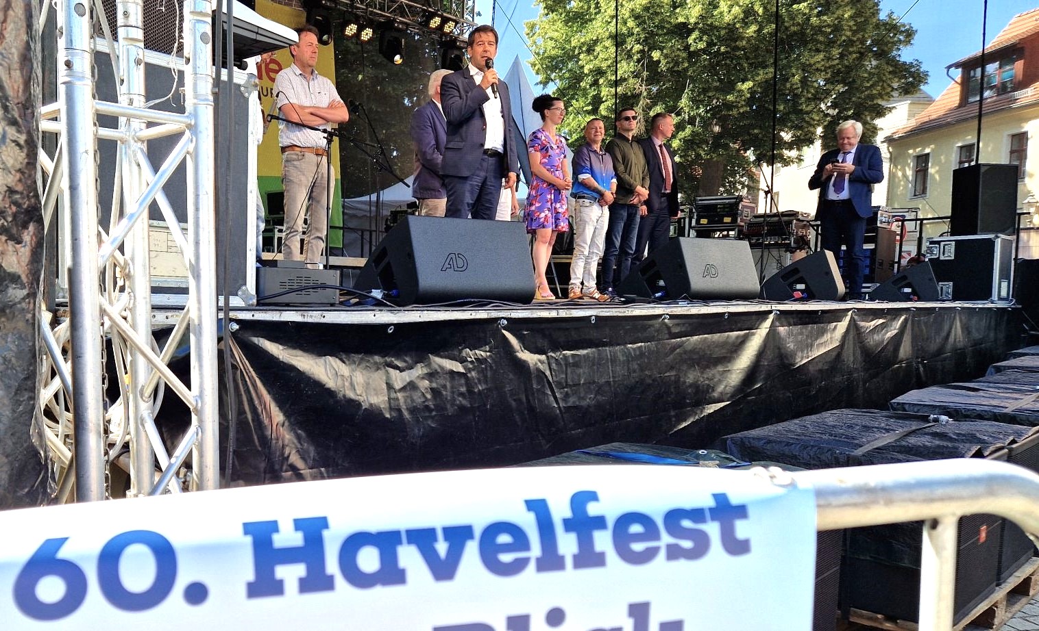 Mit der traditionellen Eröffnungszeremonie haben Oberbürgermeister Steffen Scheller, Veranstalter Hans-Günter Koch, die Stadtwerke-Geschäftsführer Michael Woik und Gunter Haase sowie die Samba-Reggae-Trommeltruppe der Freien Musikschule Brandenburg an der Havel und schließlich der Volkschor Brandenburg am Freitag um 16:00 Uhr auf der RBB-Antenne-Brandenburg Bühne am Salzhofufer das 60. Havelfest eröffnet.